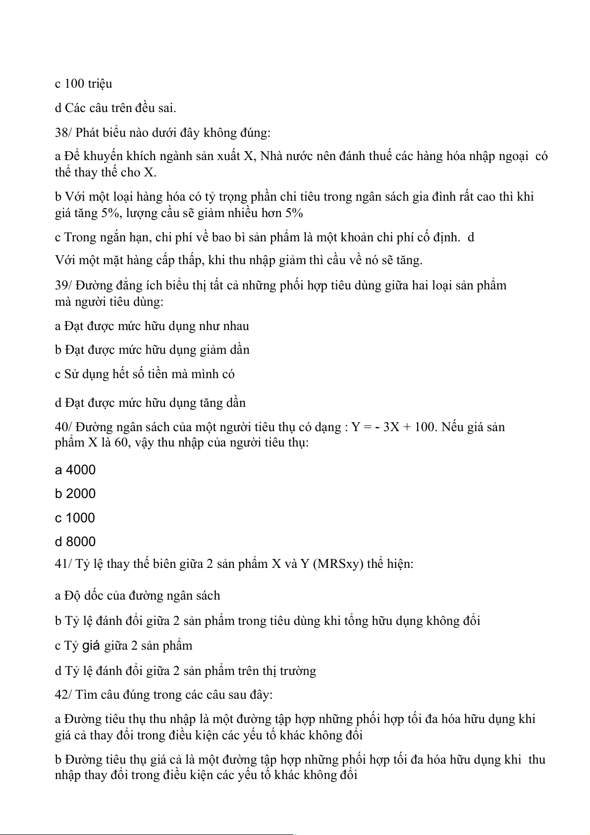 40/ Đường ngân sách của một người tiêu thụ có dạng : Y = - 3X + 100. Nếu giá sản