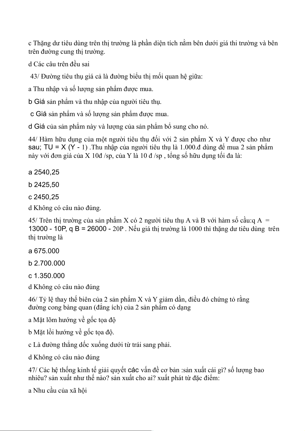 45/ Trên thị trường của sản phẩm X có 2 người tiêu thụ A và B với hàm số cầu:q A =