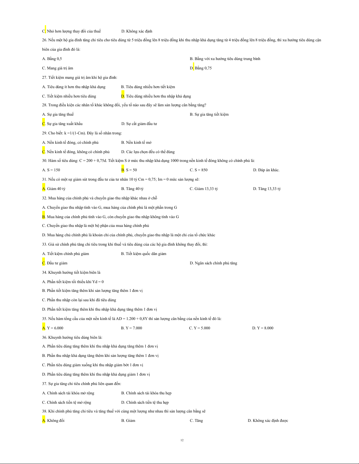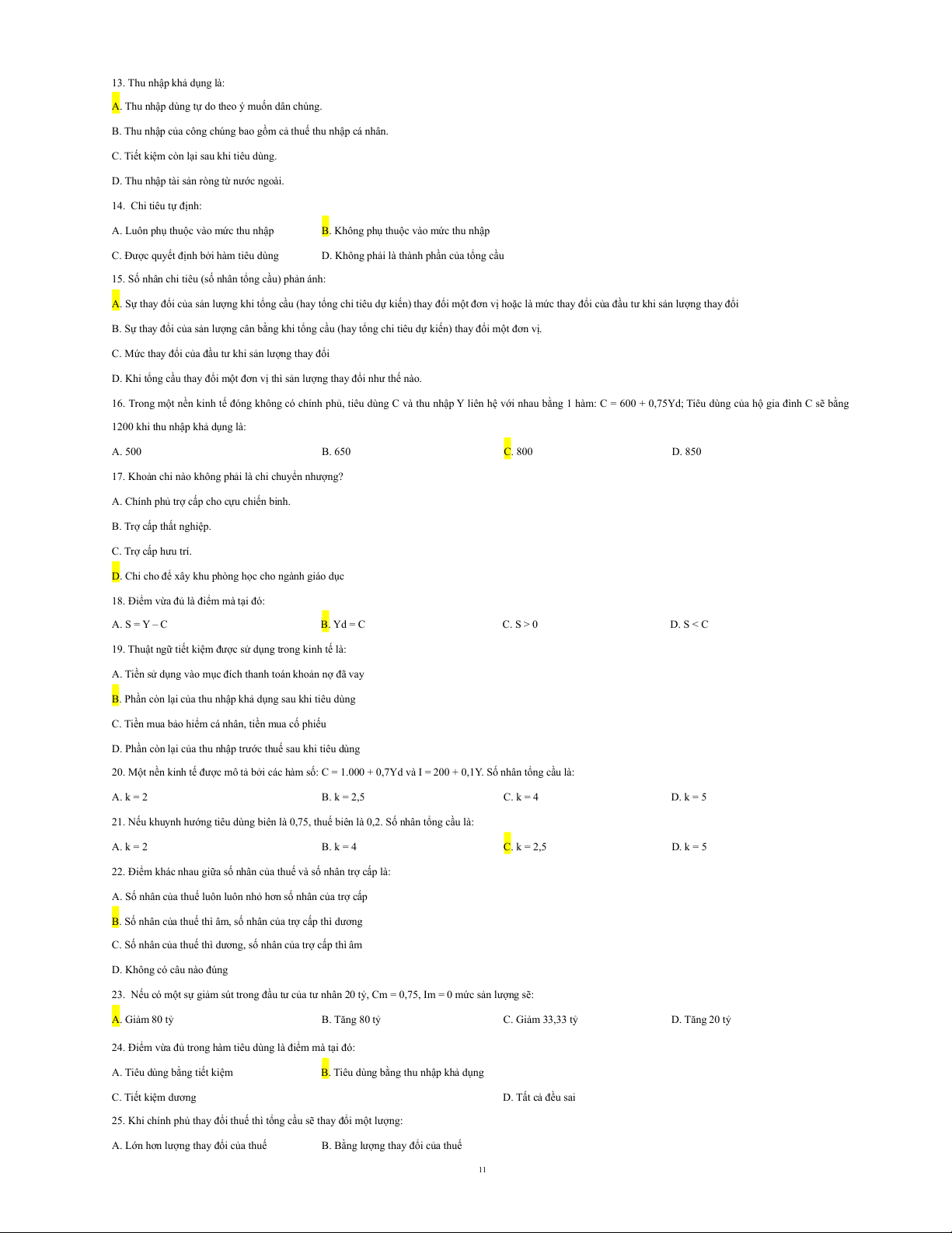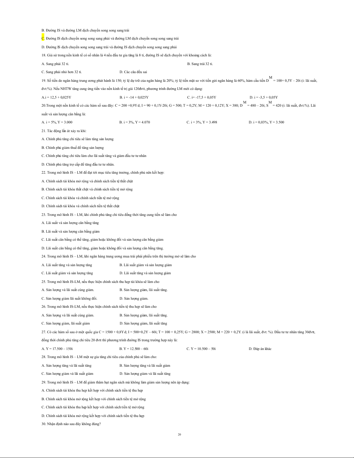 18. Giả sử trong nền kinh tế có số nhân là 4 nếu đầu tư gia tăng là 8 tỉ, đường IS sẽ dịch chuyển với khoảng cách là: A. Sang phải 32 tỉ. B. Sang trái 32 tỉ.