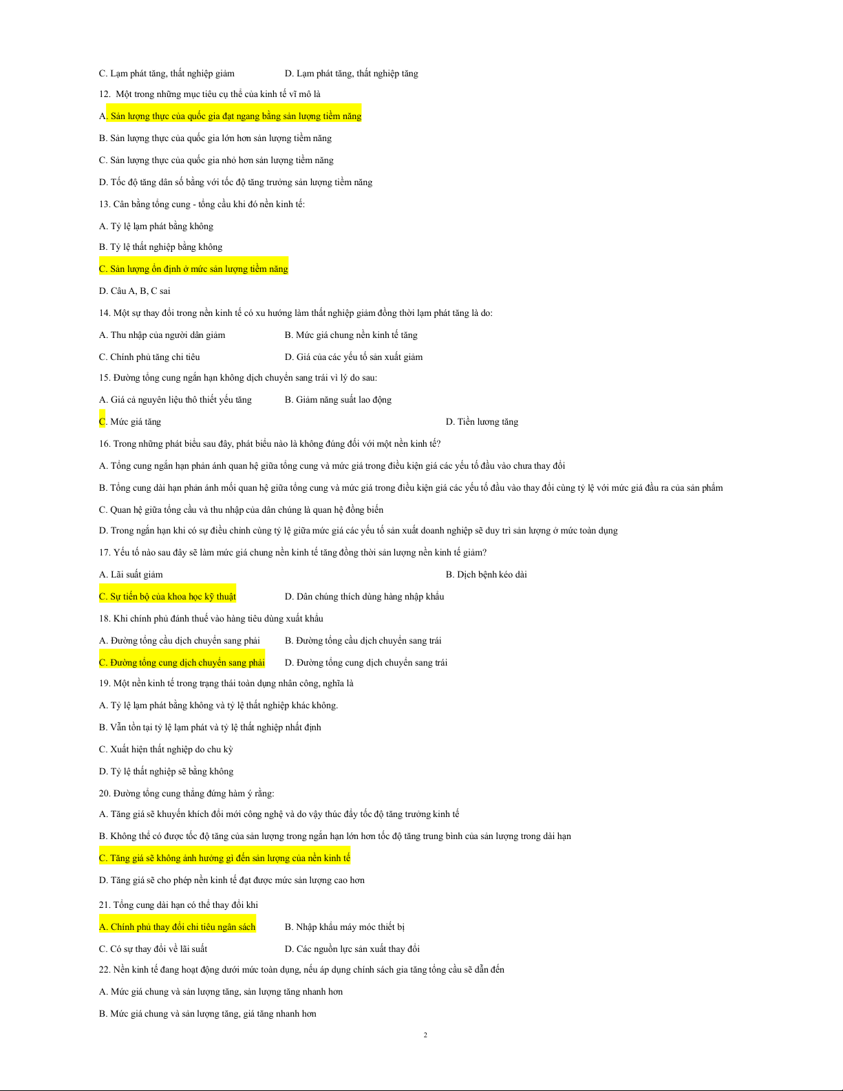 22. Nền kinh tế đang hoạt động dưới mức toàn dụng, nếu áp dụng chính sách gia tăng tổng cầu sẽ dẫn đến