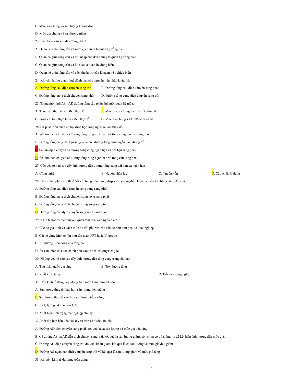 3. Mục tiêu ổn định kinh tế vĩ mô trong ngắn hạn là: