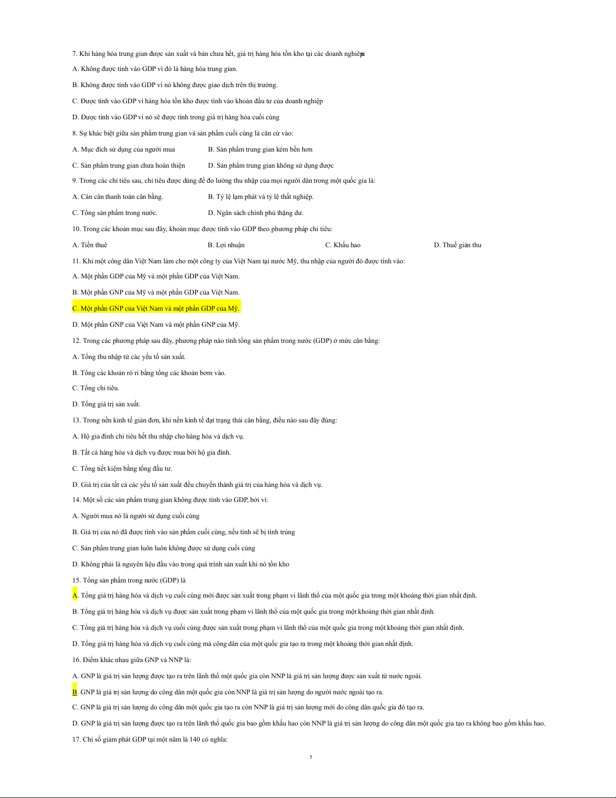 5. Trong kinh tế học, nguồn lực của xã hội thường được chia thành các nhóm sau: A. Hàng hóa và dịch vụ B. Các yếu tố tiêu dùng