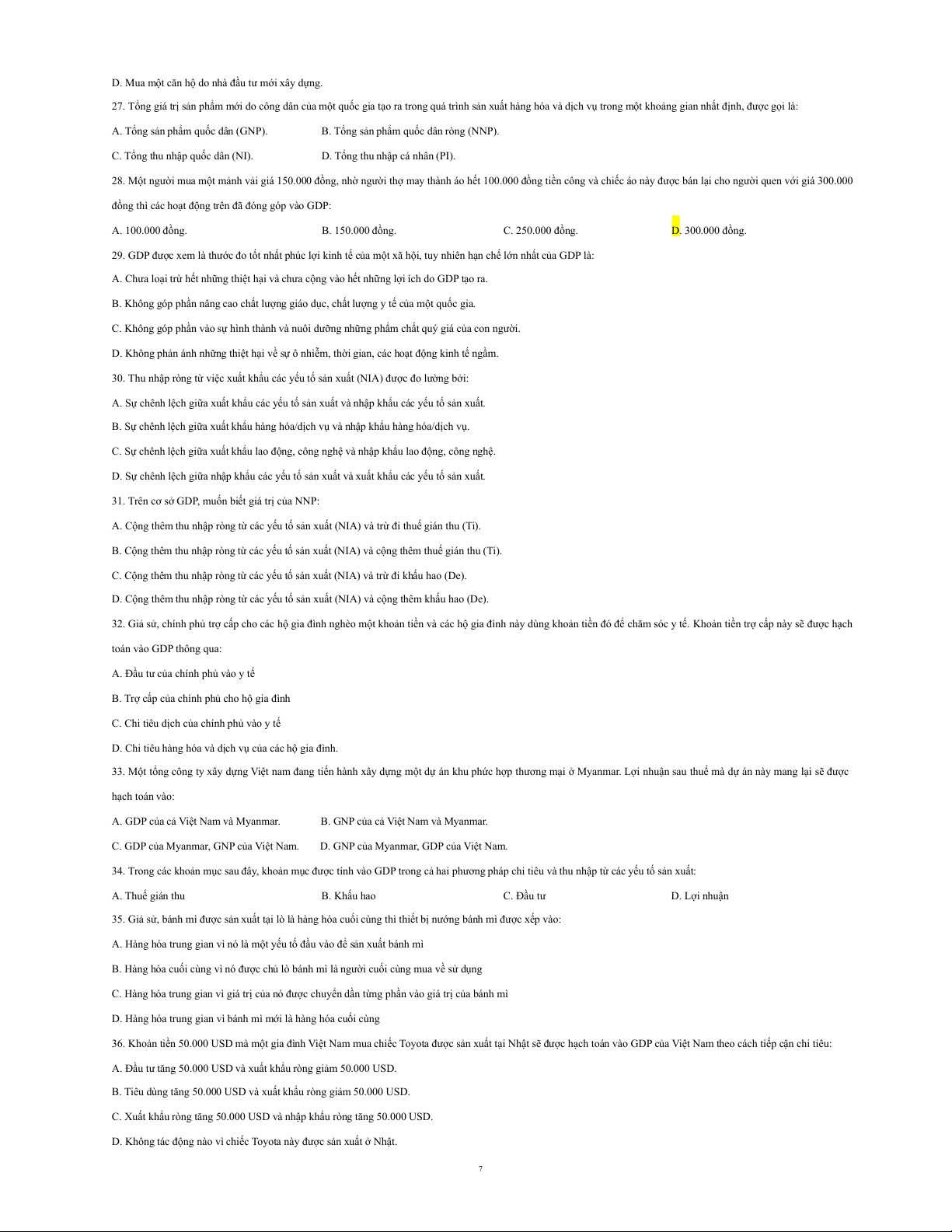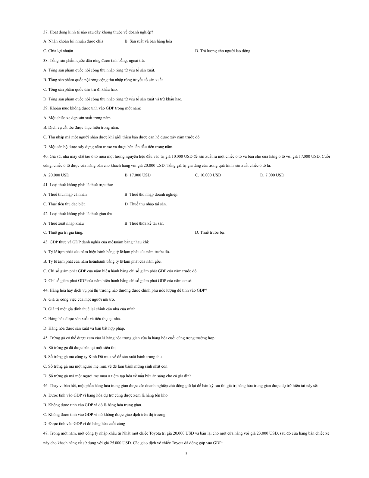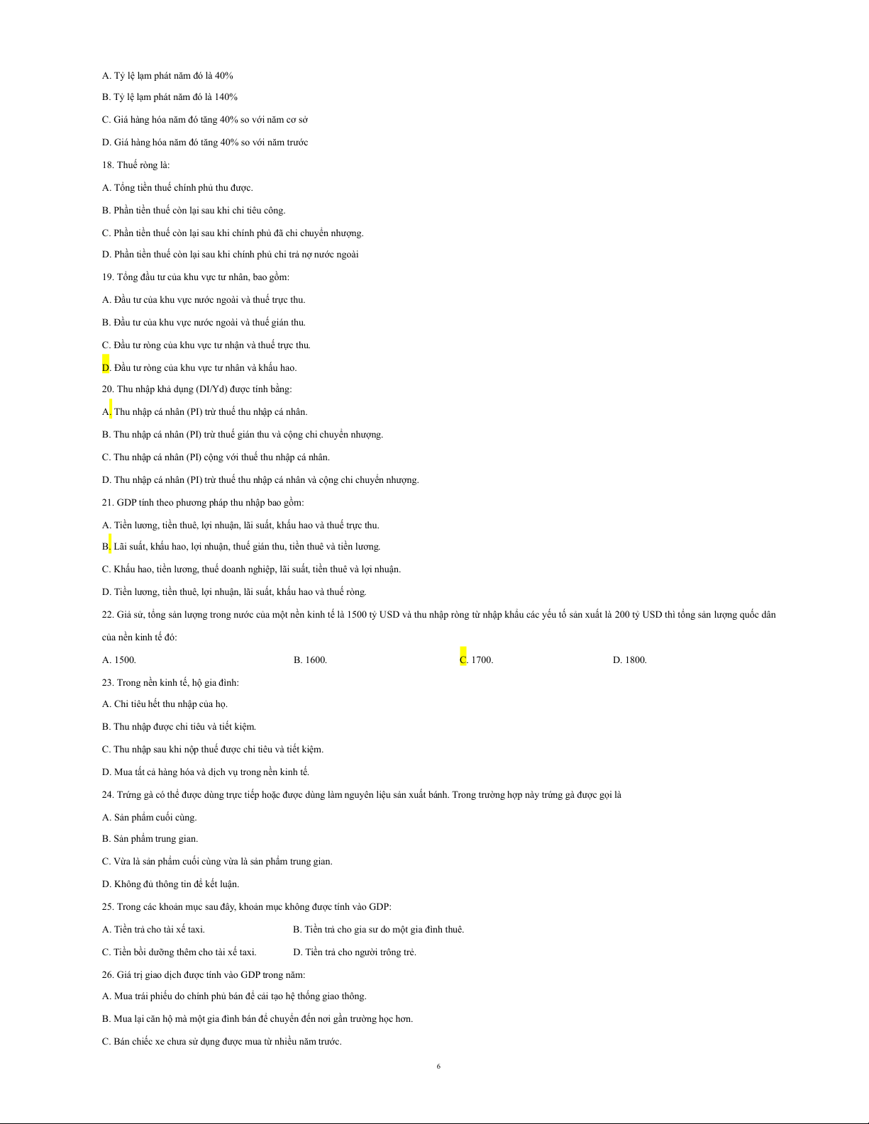 7. Tổng cầu hàng hoá và dịch vụ của một nước không phụ thuộc vào các quyết định của: