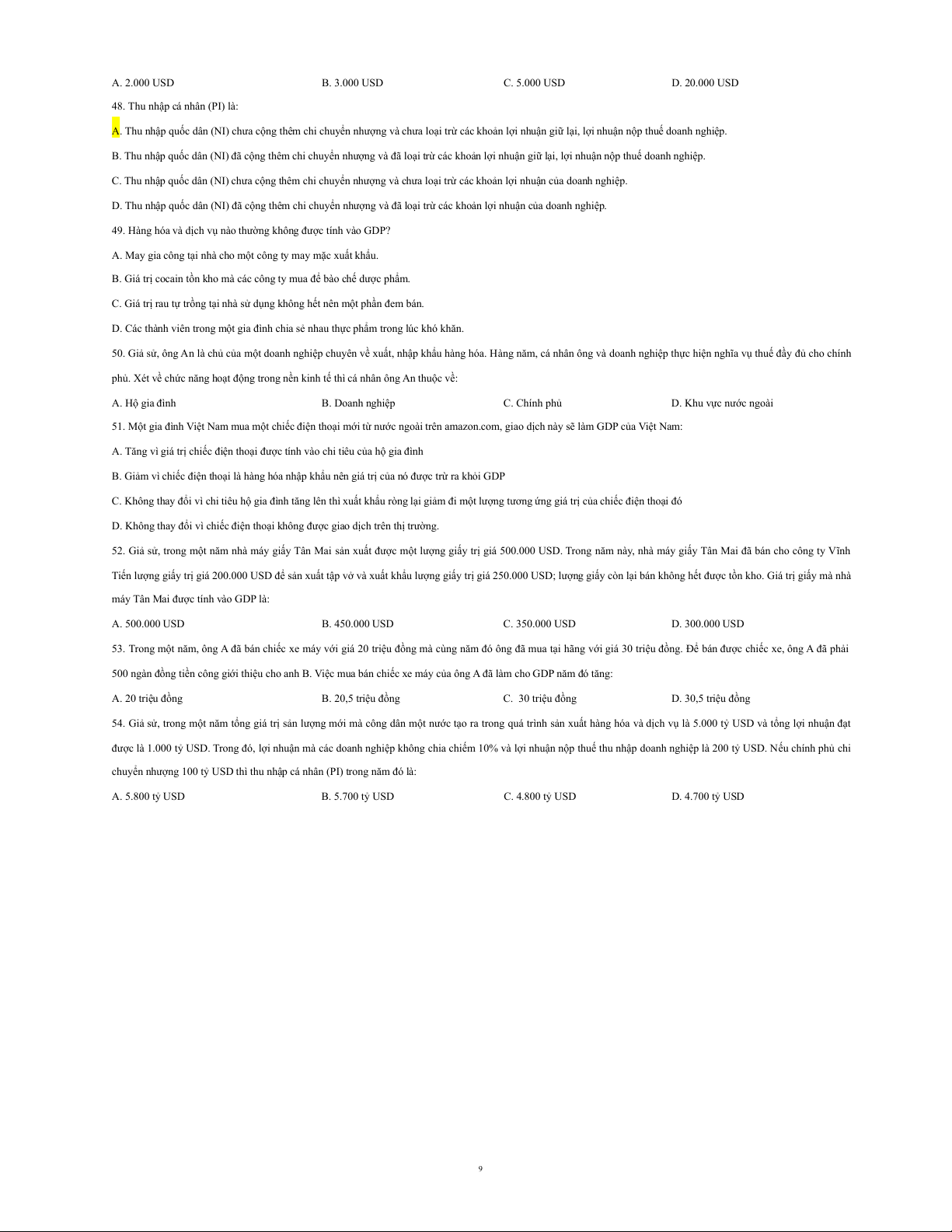 A. Tiền lương danh nghĩa giảm. B. Lãi suất giảm. C. Giá dầu tăng.