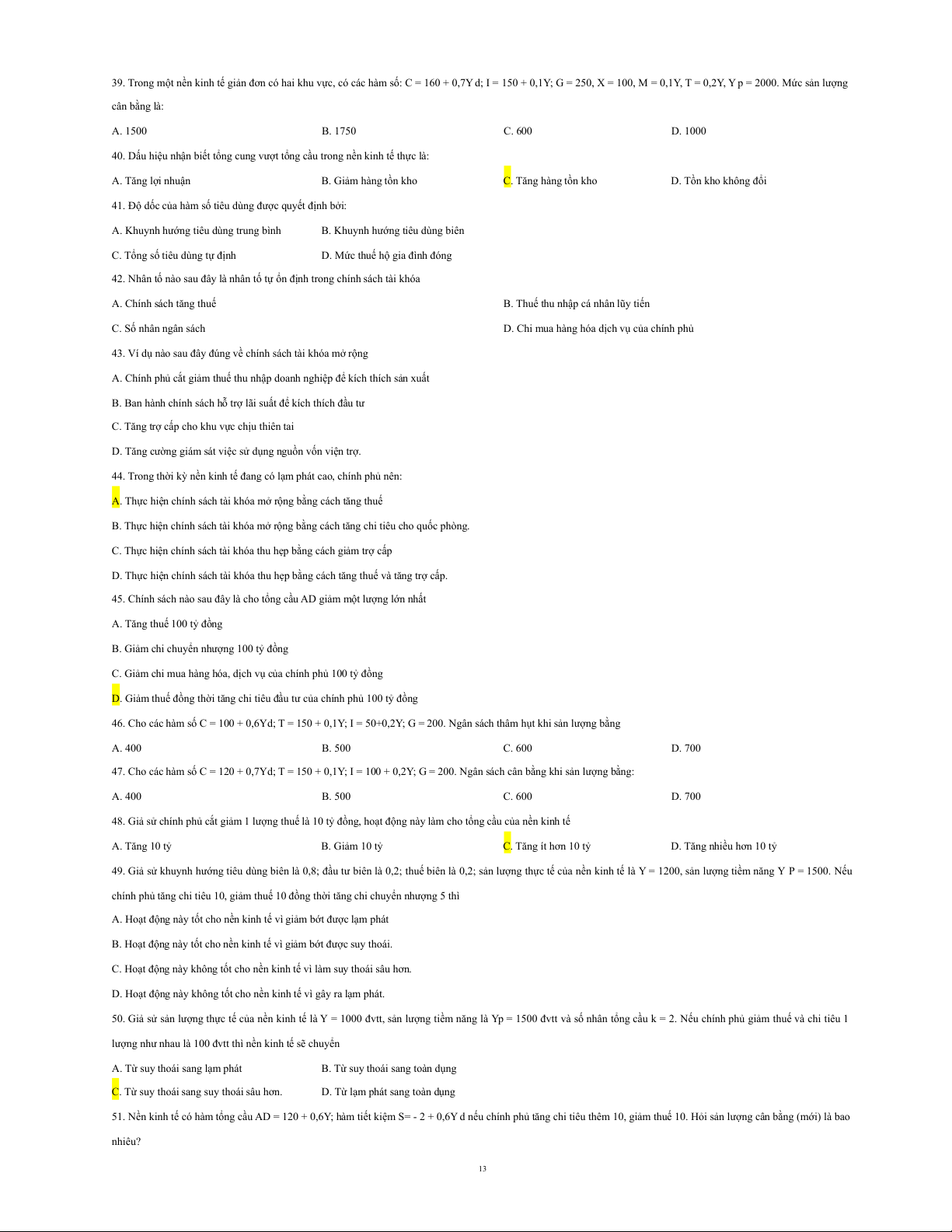 13. Cân bằng tổng cung - tổng cầu khi đó nền kinh tế: