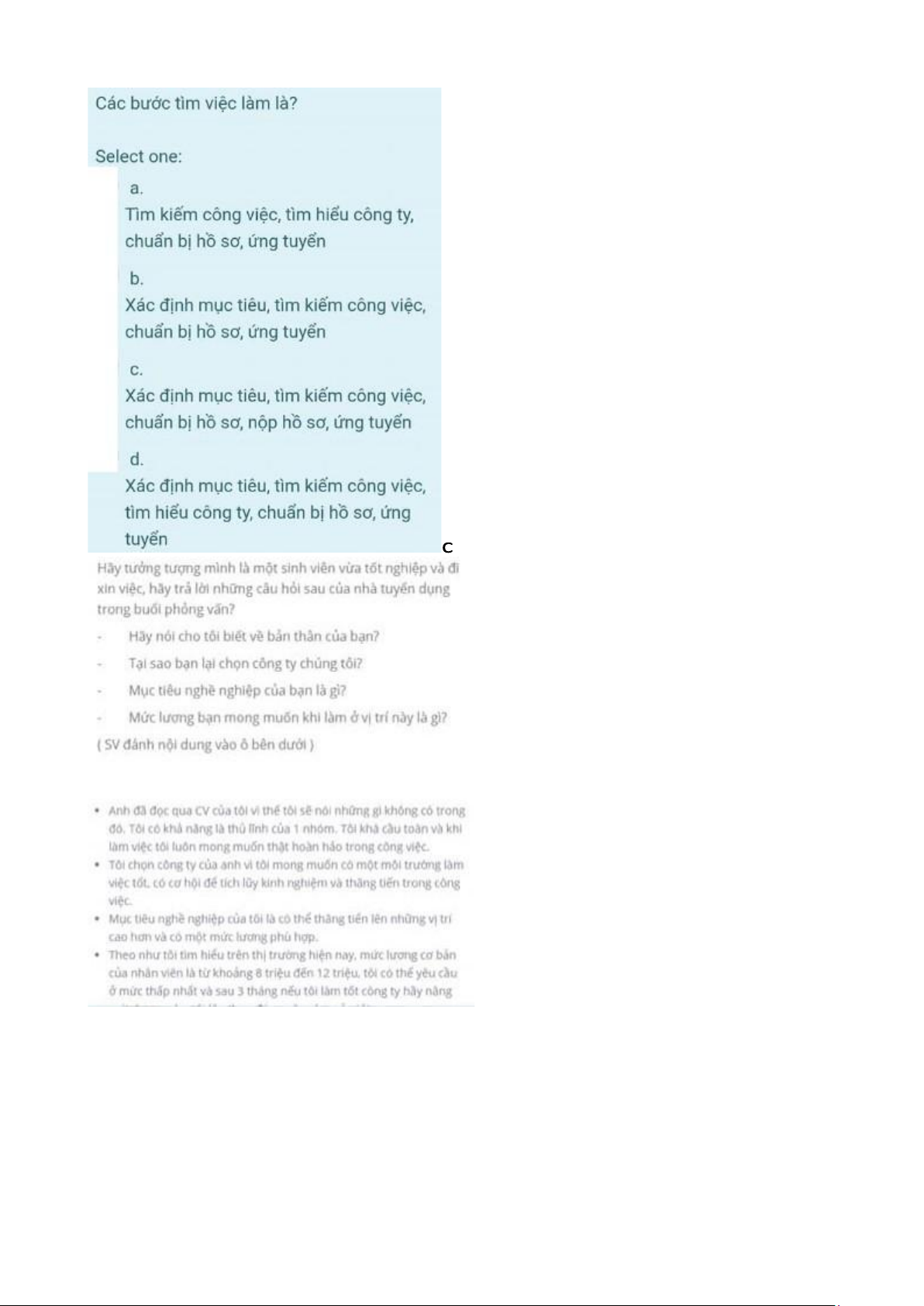 Xác định mục tiêu, tìm kiếm công việc, chuẩn bị hồ sơ, ứng tuyển lOMoAR cPSD| 45740413 Flag question c.