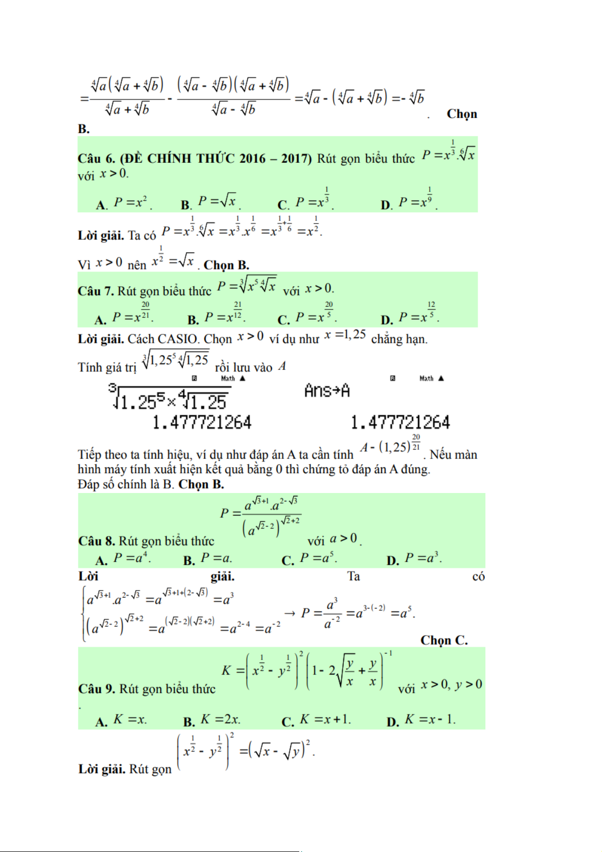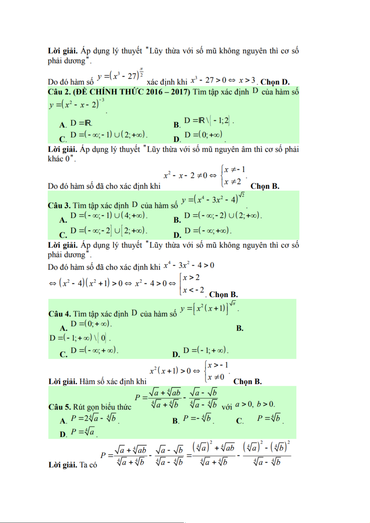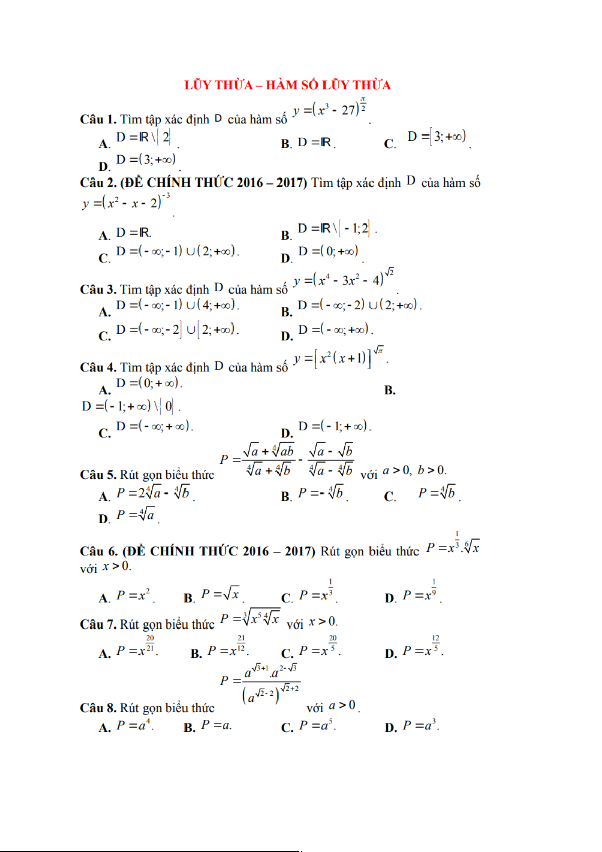 Trắc nghiệm Lũy thừa - Hàm số lũy thừa đề chính thức 2016-2017 môn Toán cao cấp | Trường Quốc tế - Đại học Quốc gia Hà Nội