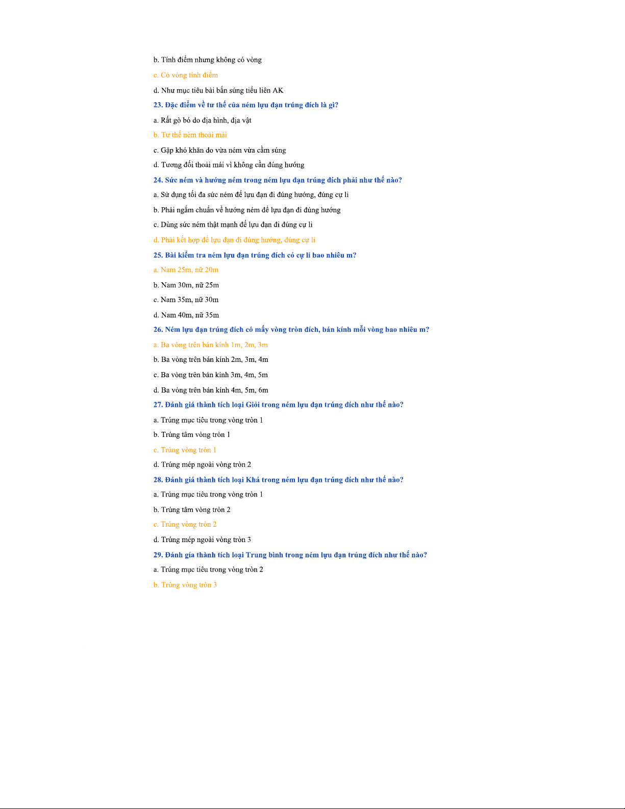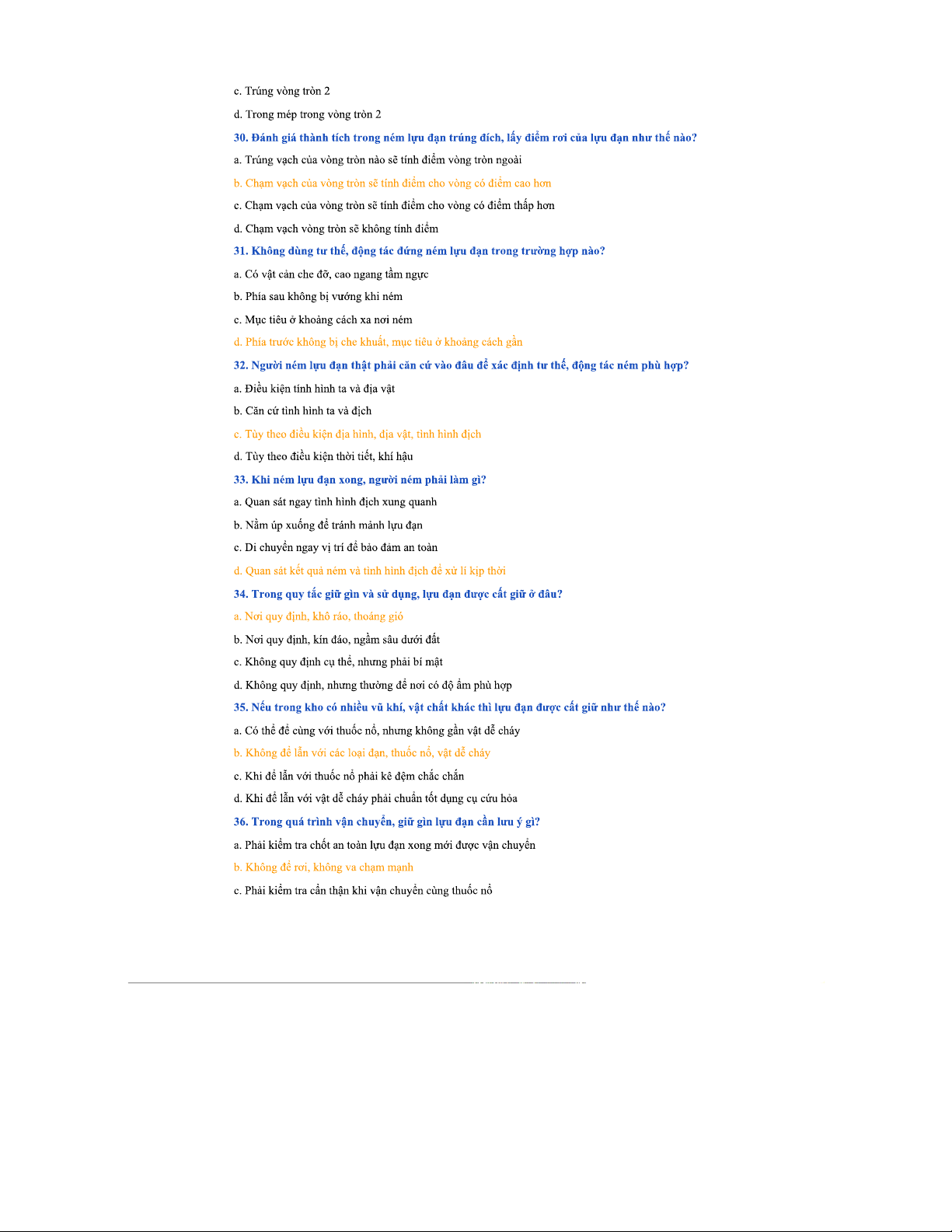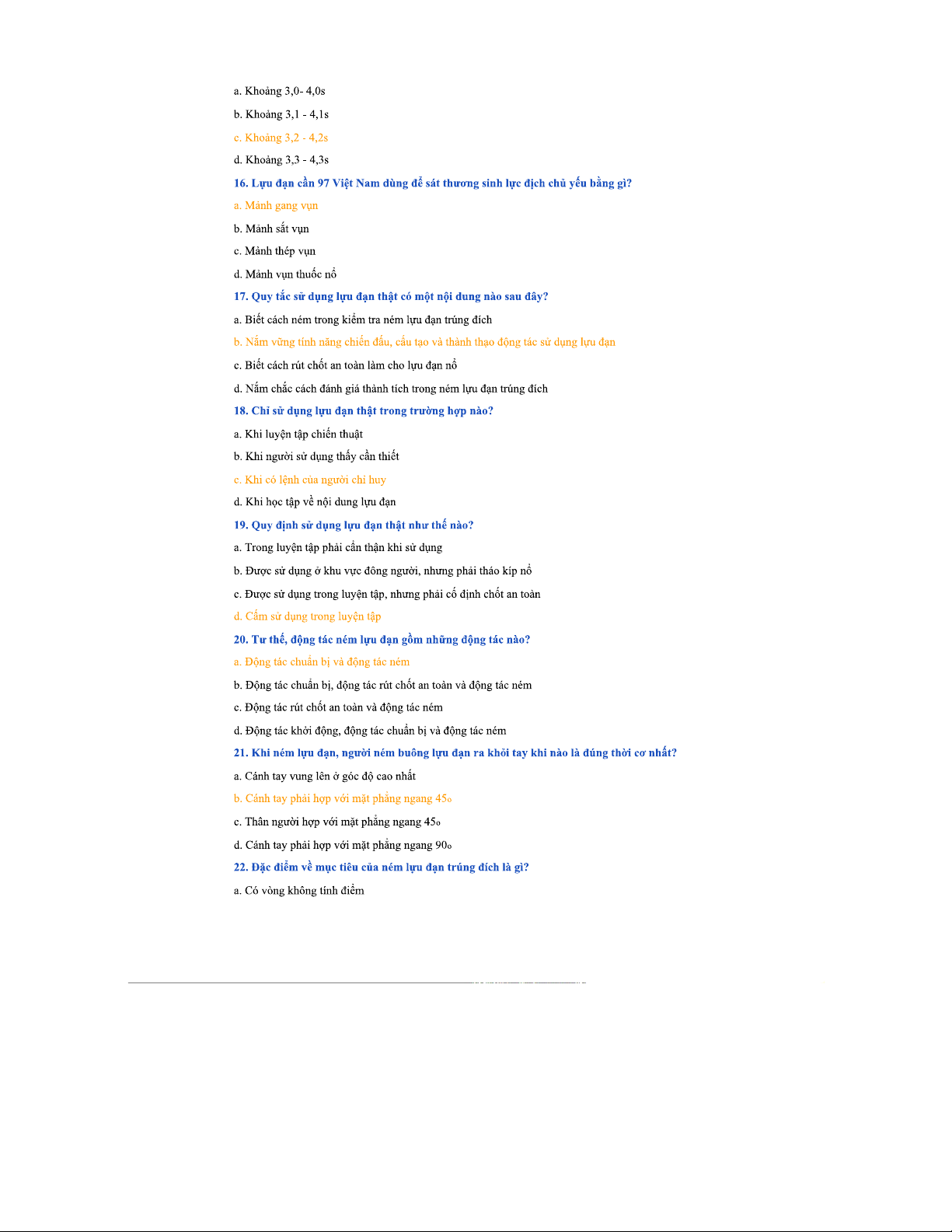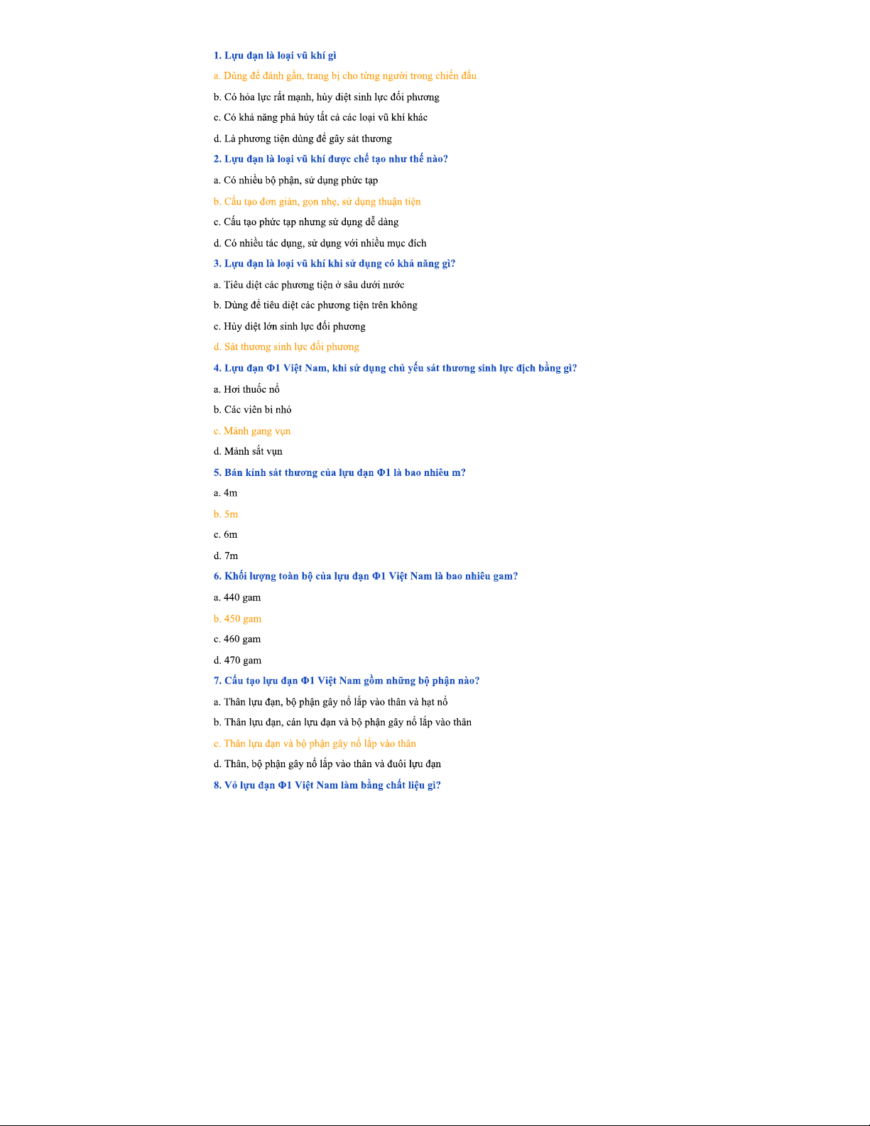 Trắc nghiệm môn GDQP - Lựu đạn Φ1 và kĩ thuật ném lựu đạn