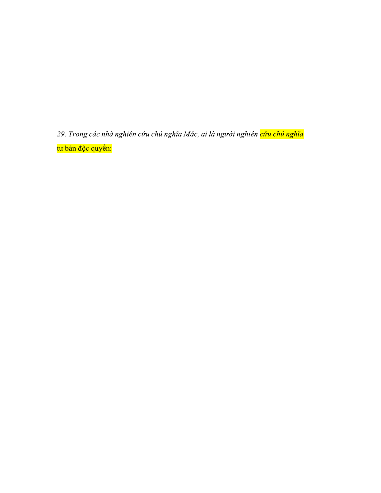 30. Nguyên nhân cơ bản dẫn đến hình thành chủ nghĩa tư bản đọc quyền là: A. Do đấu tranh giai cấp