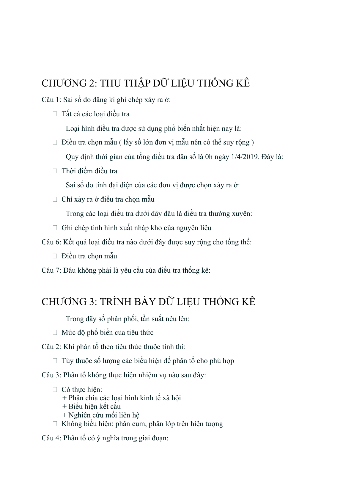 CHƯƠNG 2: THU THẬP DỮ LIỆU THỐNG KÊ