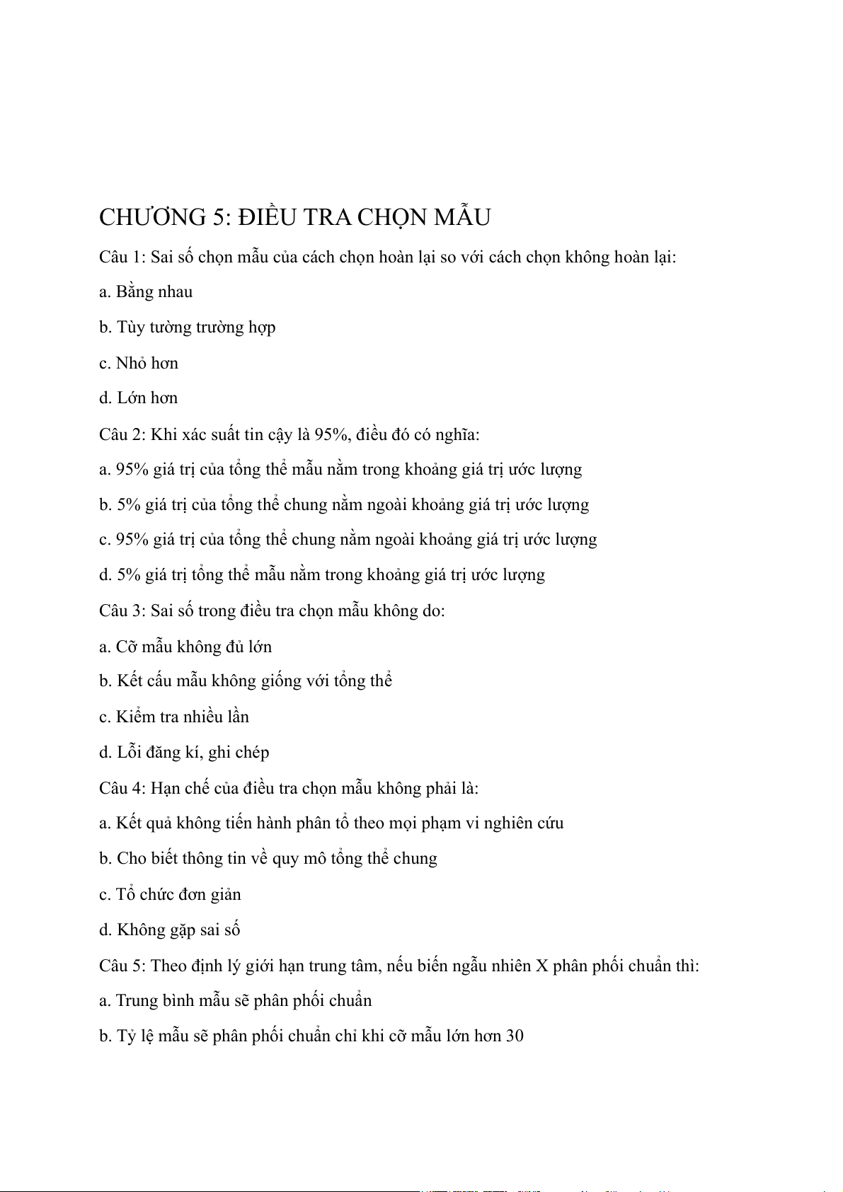 b. 5% giá trị của tổng thể chung nằm ngoài khoảng giá trị ước lượng