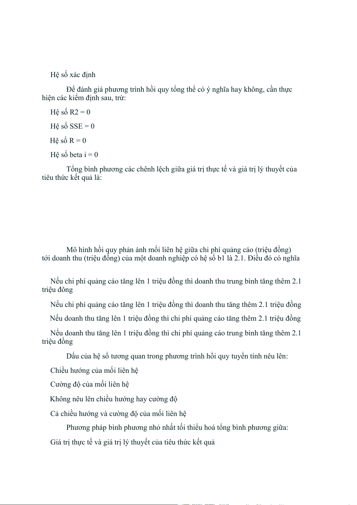 tới doanh thu (triệu đồng) của một doanh nghiệp có hệ số b1 là 2.1. Điều đó có nghĩa