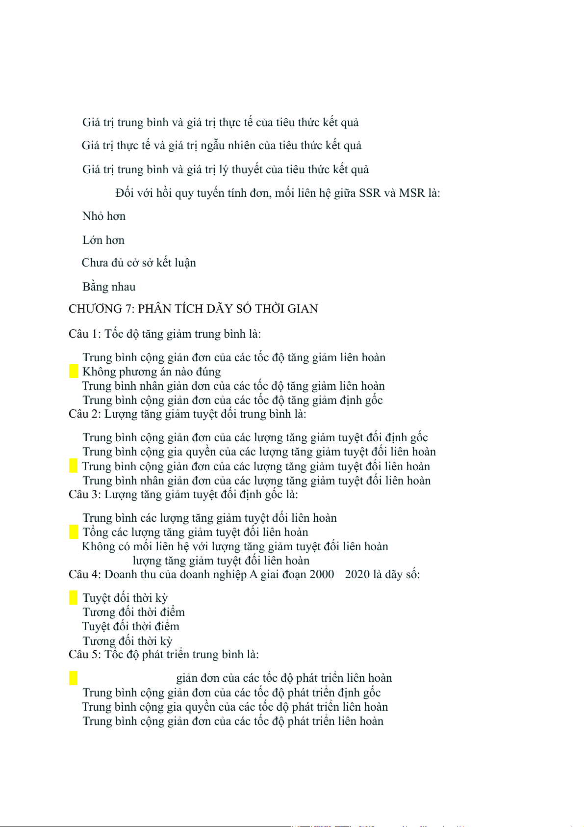 Câu 4: Doanh thu của doanh nghiệp A giai đoạn 2000 2020 là dãy số: Tuyệt đối thời kỳ Tương đối thời điểm Tuyệt đối thời điểm Tương đối thời kỳ