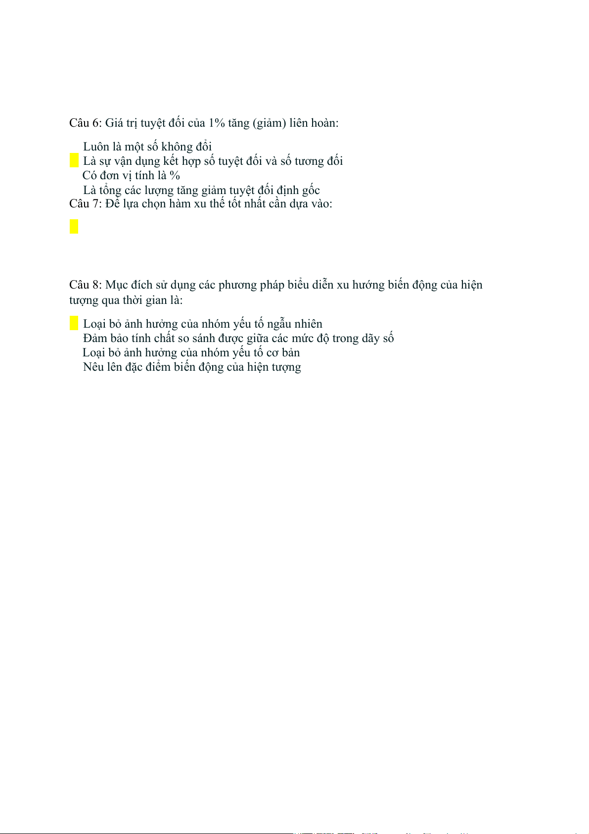 Câu 7: Để lựa chọn hàm xu thế tốt nhất cần dựa vào: