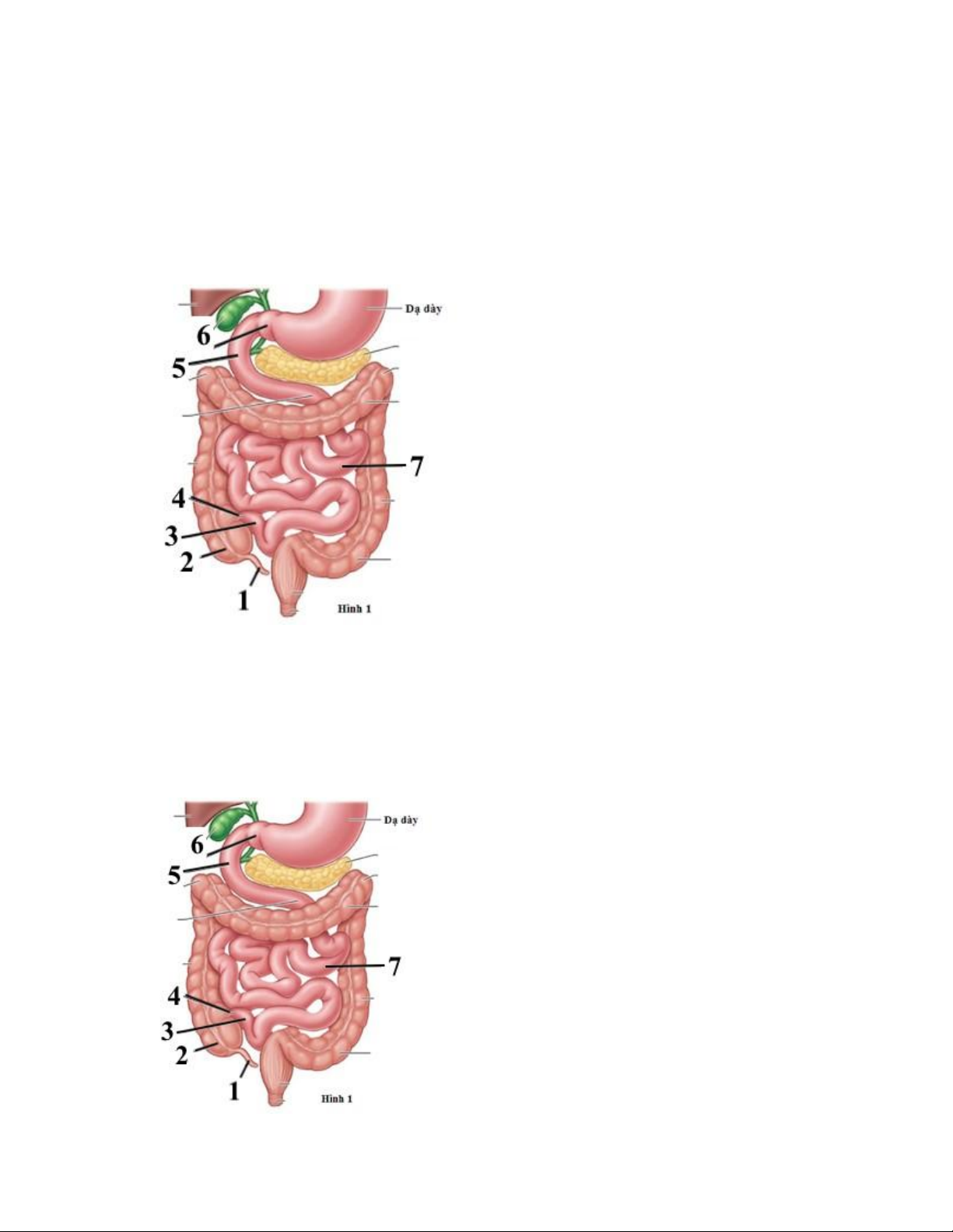 57. Vị trí số 5 là cấu trúc lOMoAR cPSD| 46342819 A. Tá tràng B. Hồi tràng C. Hỗng tràng D. Manh tràng
