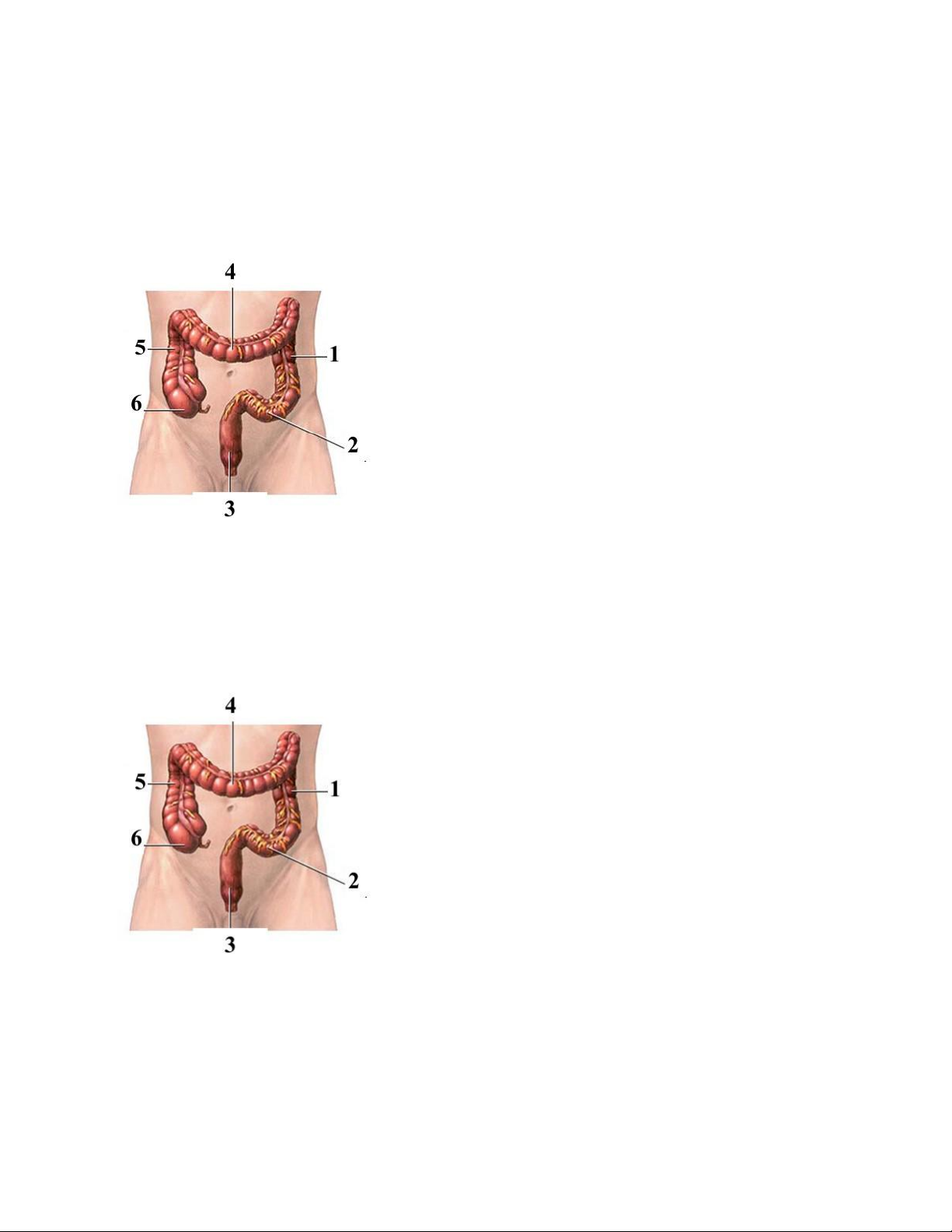 62. Vị trí số 3 là cấu trúc A. Manh tràng B. Đại tràng lên C. Trực tràng D. Đại tràng sigma