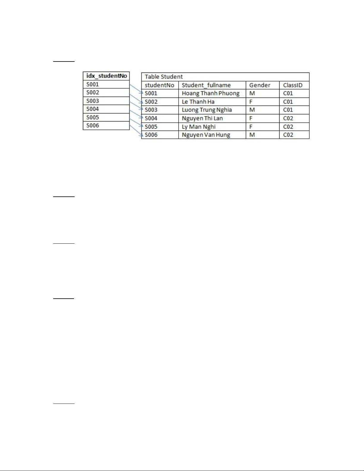 Câu 99: Index idx_studentNo sau thuộc dạng nào    a. Sparse index  b. Dense index  c. Cả a và b đều đúng  d. Cả a và b đều sai      lOMoAR cPSD| 47206071