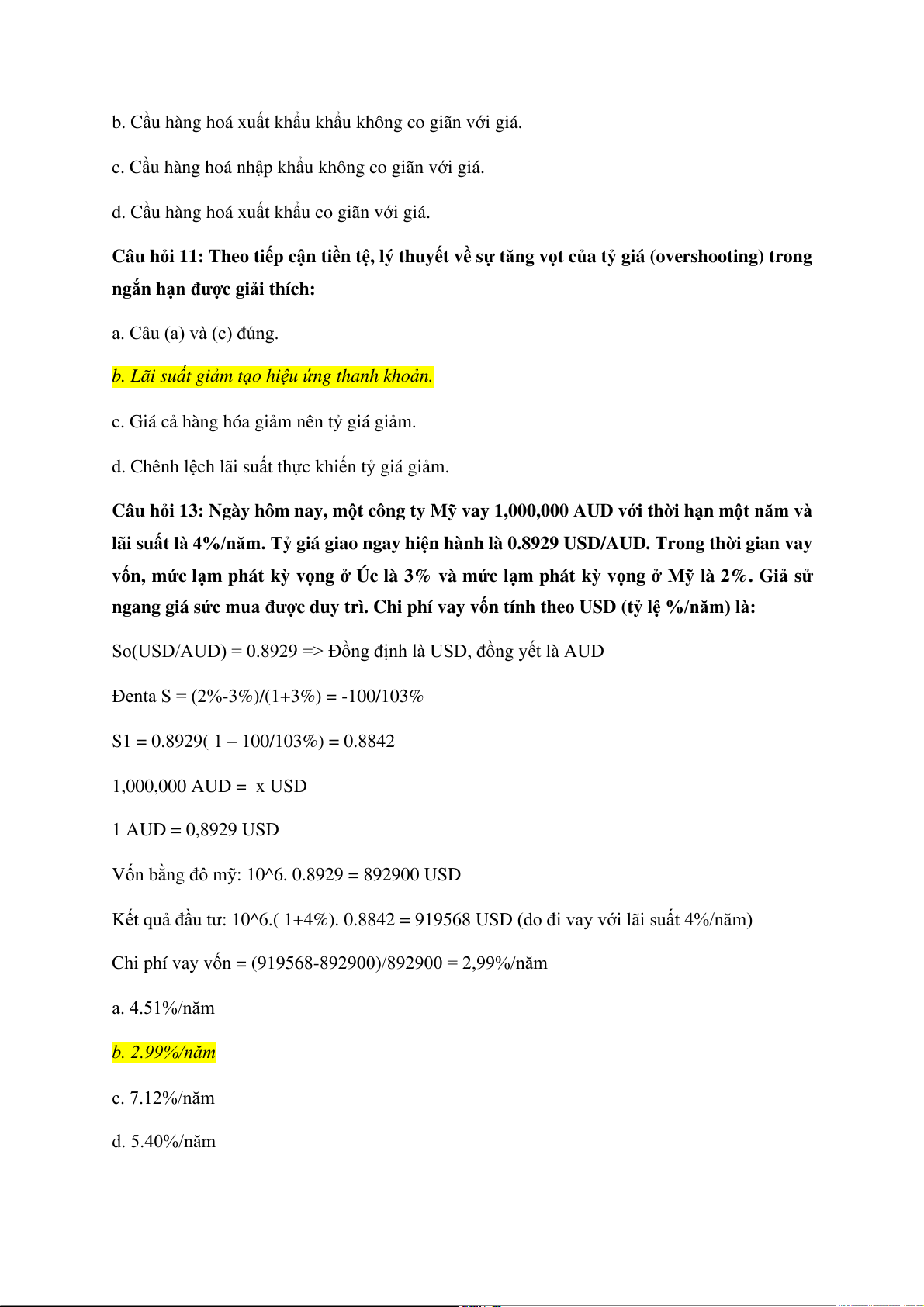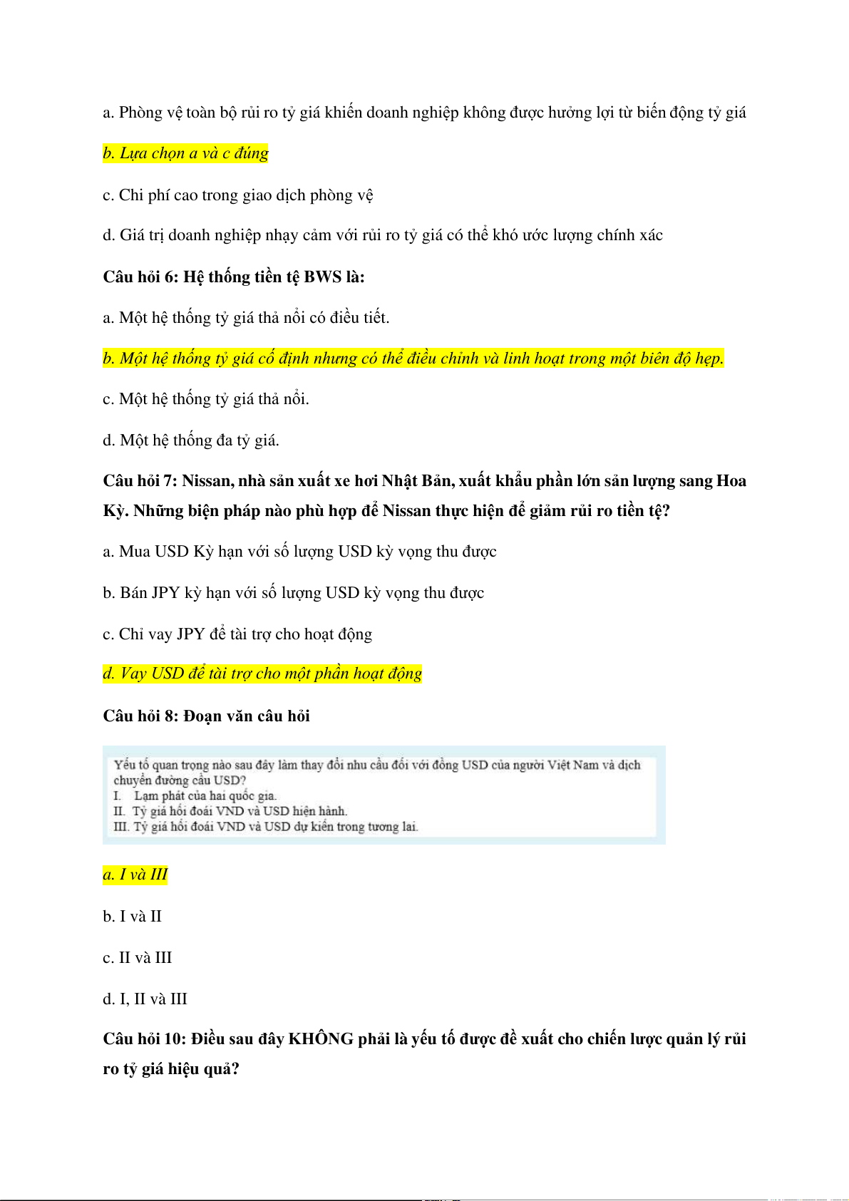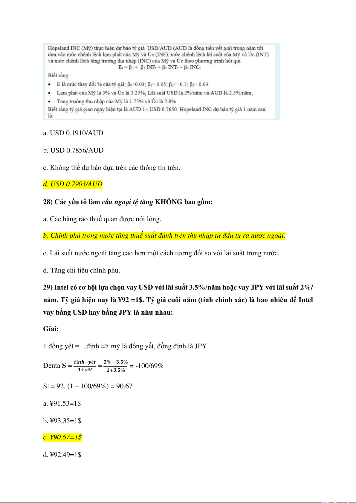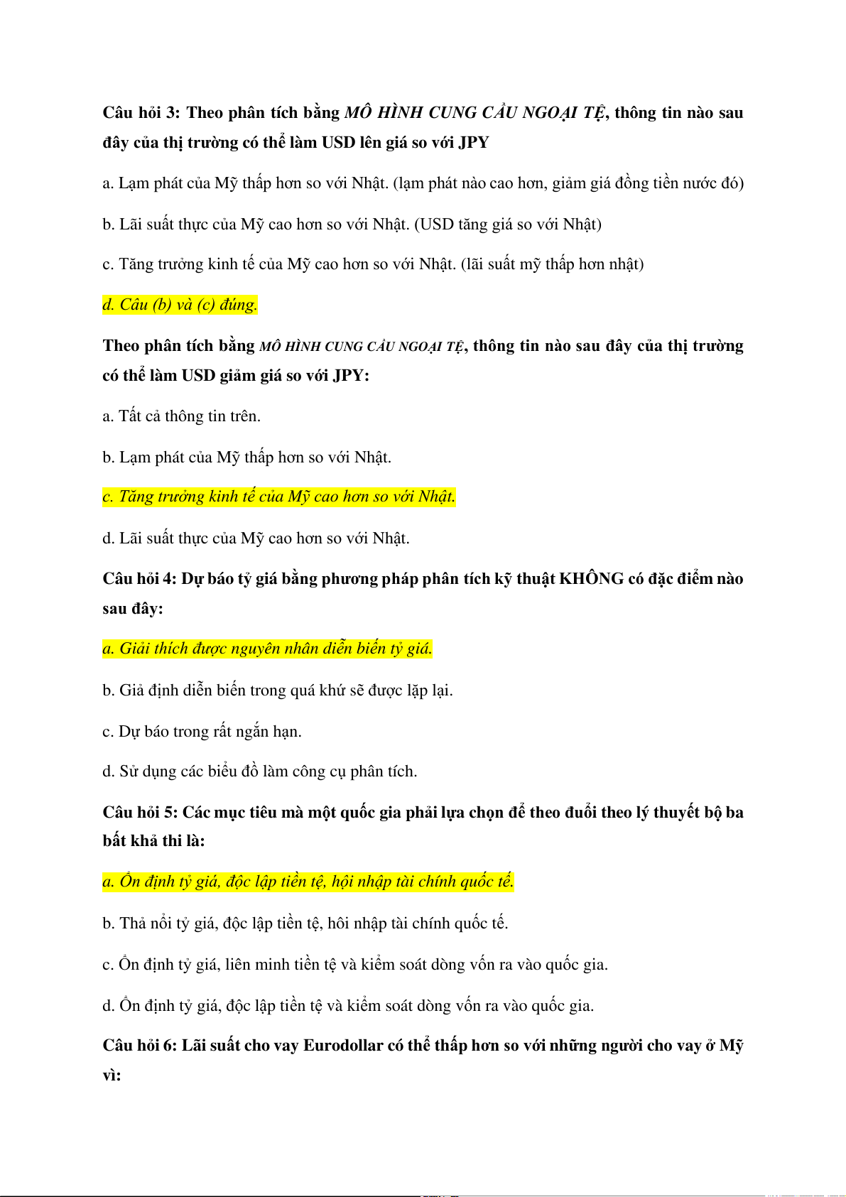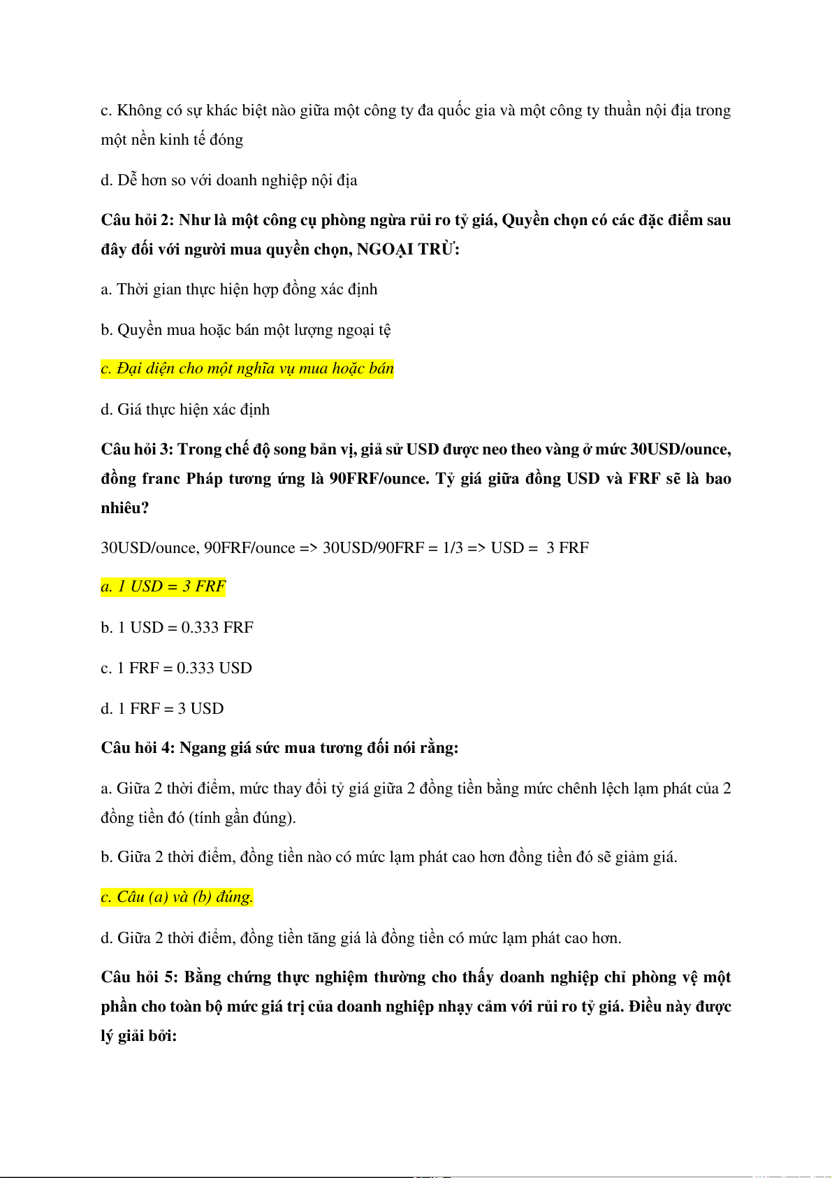 ữ 2 thời điểm, đồng tiền tăng giá là đồng tiền có m c ứ lạm phát cao hơn. Câu h i ỏ 5: B n