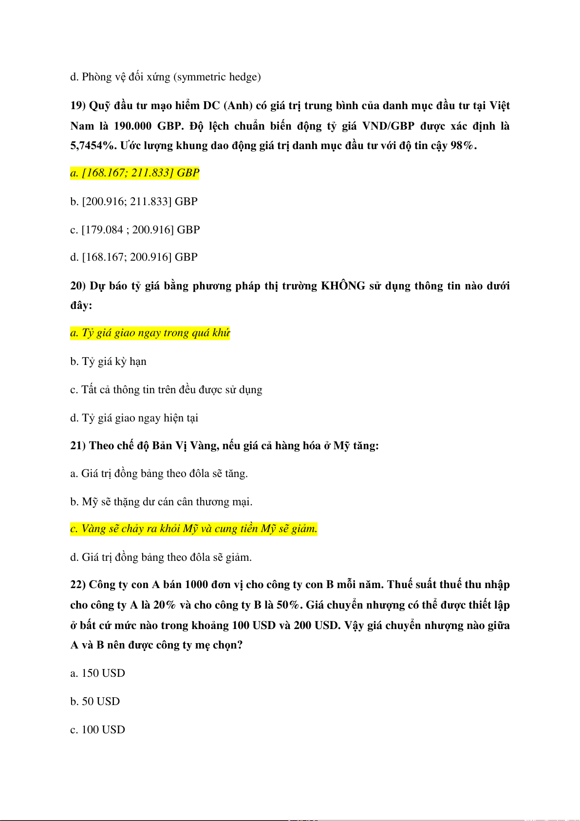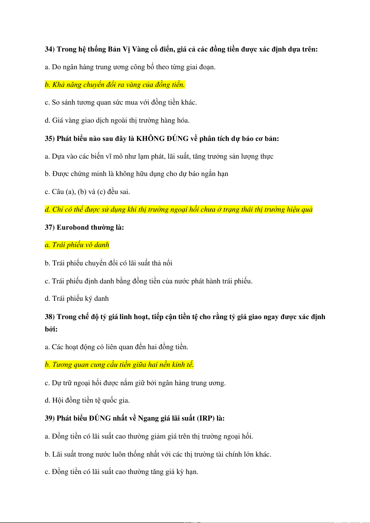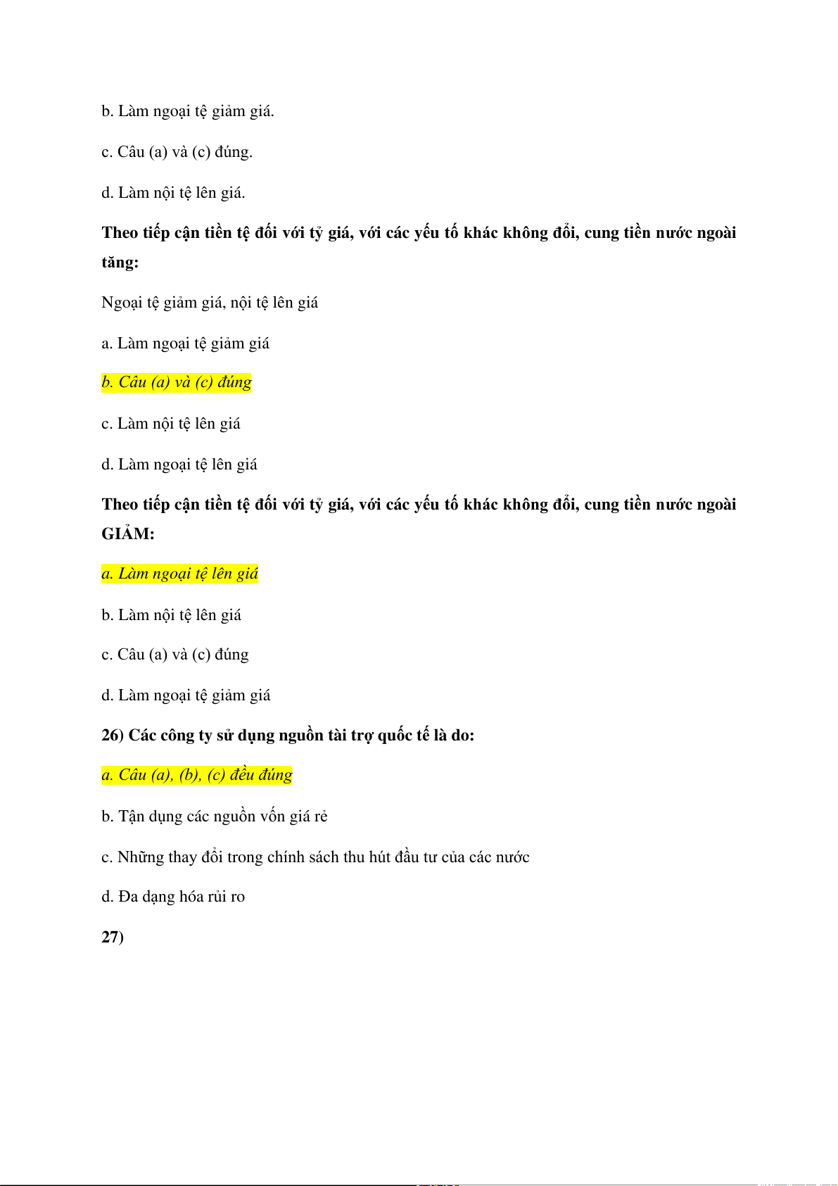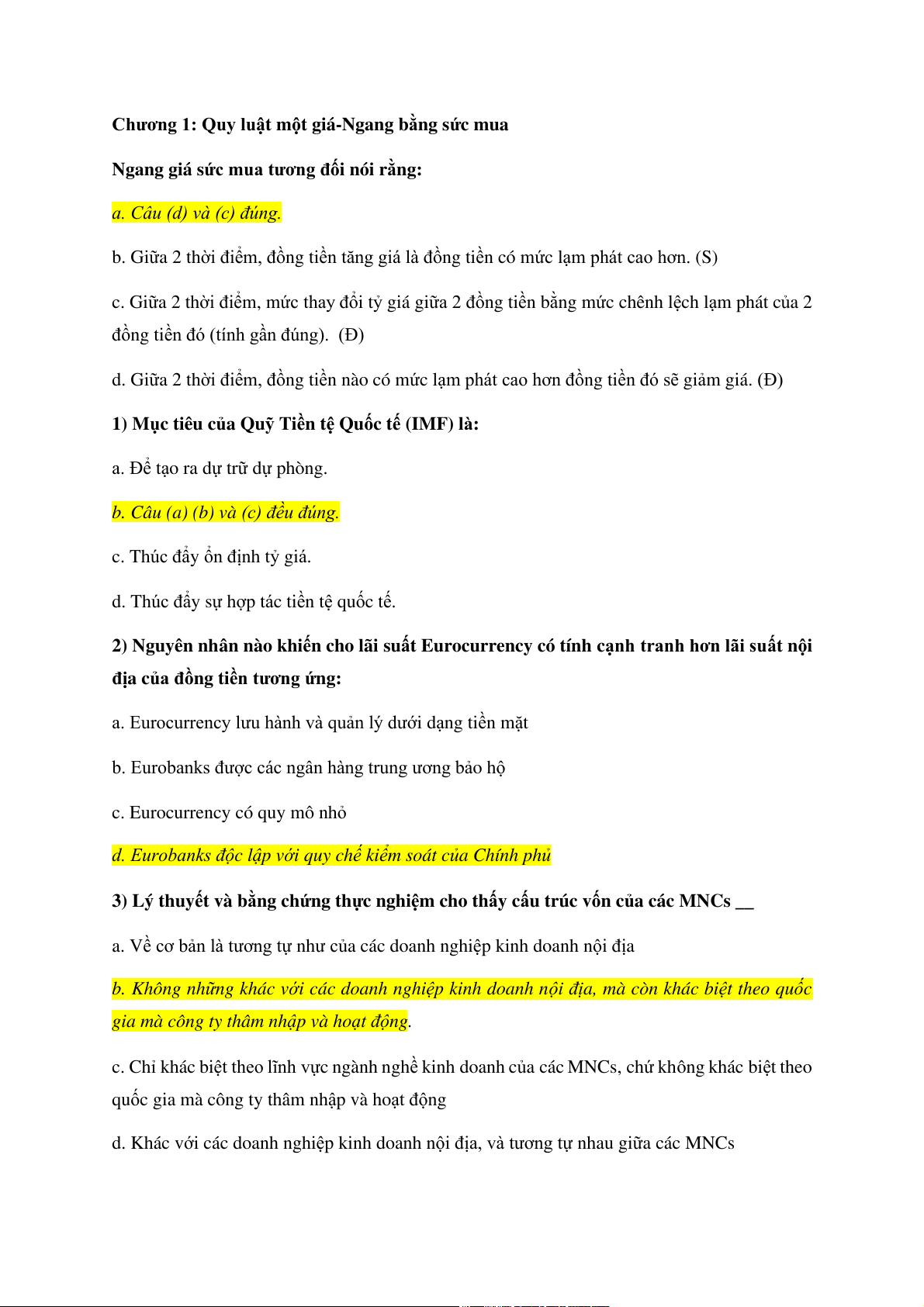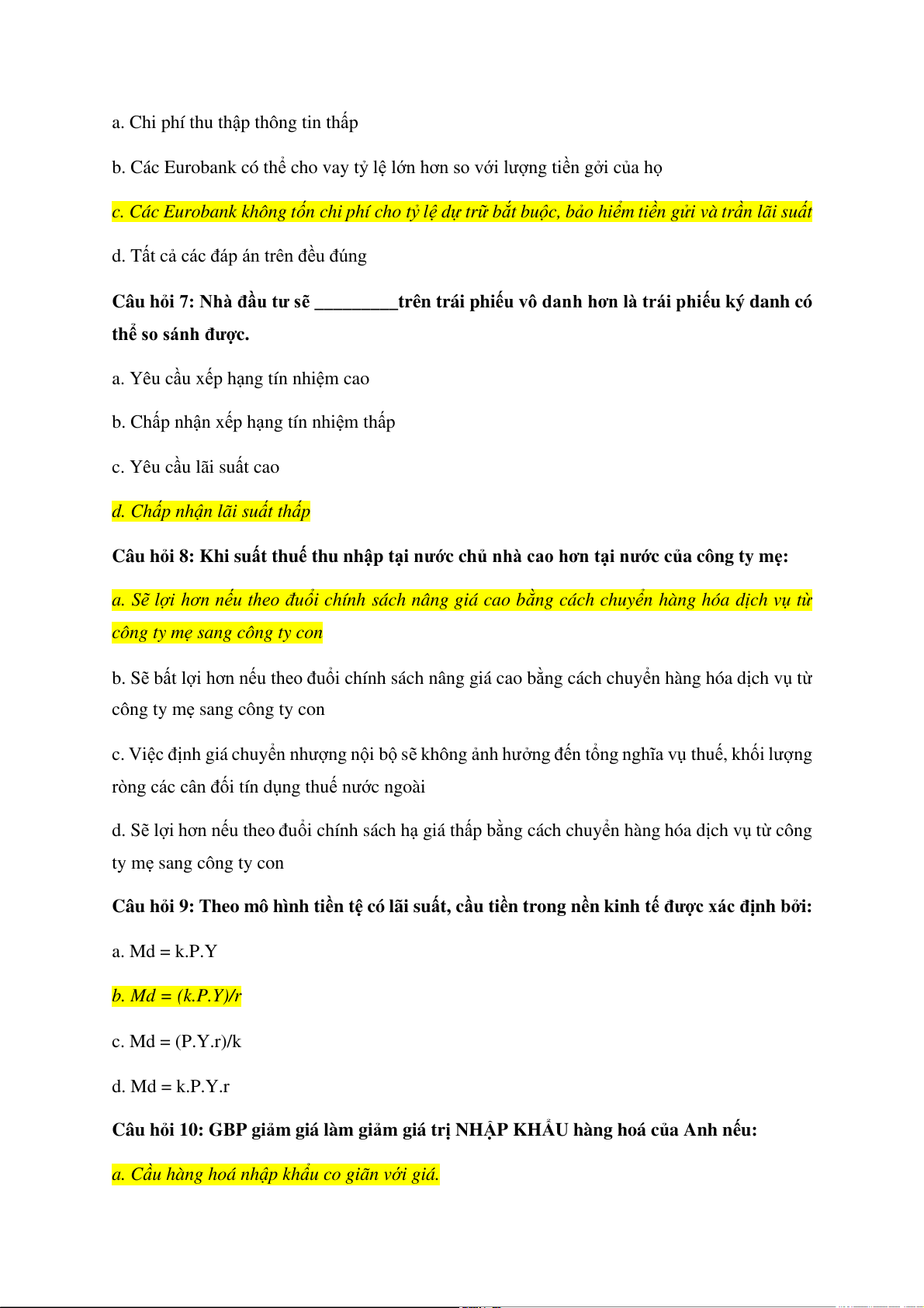 ữ 2 thời điểm, đồng tiền tăng giá là đồng tiền có m c ứ lạm phát cao hơn. Câu h i ỏ 5: B n