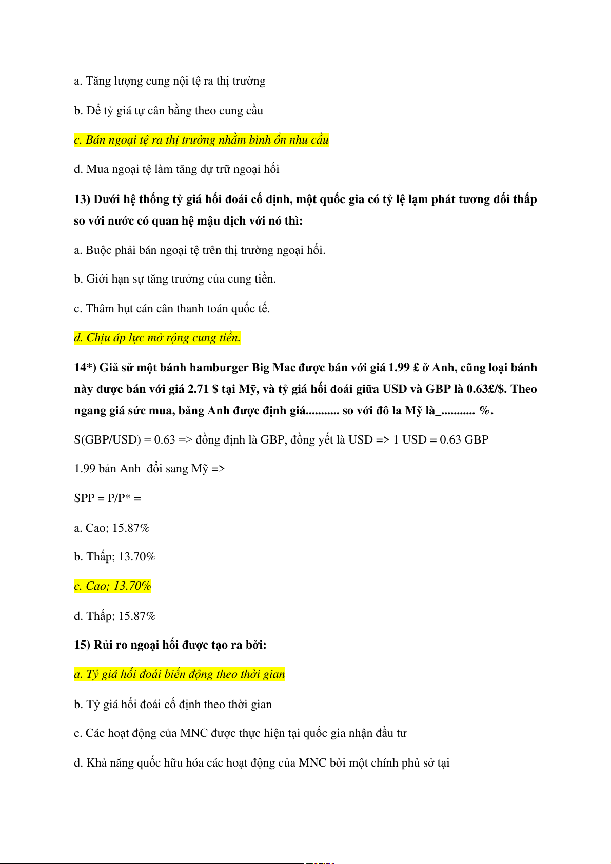 13) Dưới h thống tỷ giá hối đoái cố định, một quốc gia có tỷ l lạm phát tương đối thấp