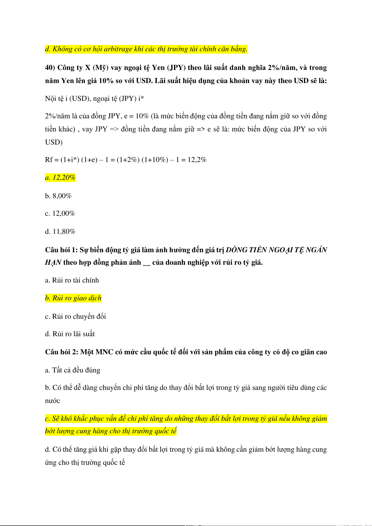 ủ ro tỷ giá khin doanh nghiệp không đưc hưởng li từ bin động tỷ giá b. Lựa ch ọn a và c đúng