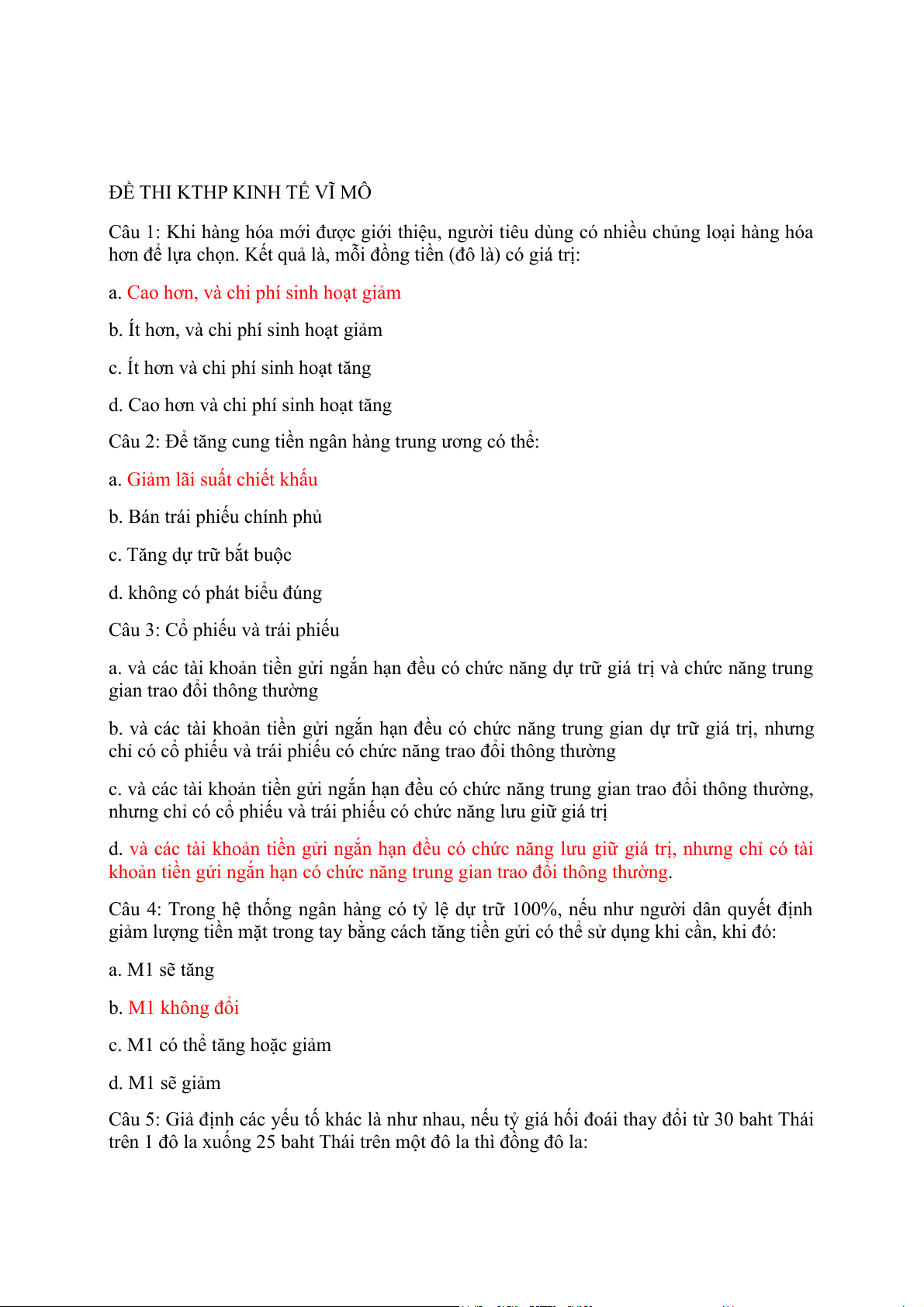 ĐỀ THI KTHP KINH TẾ VĨ MÔ