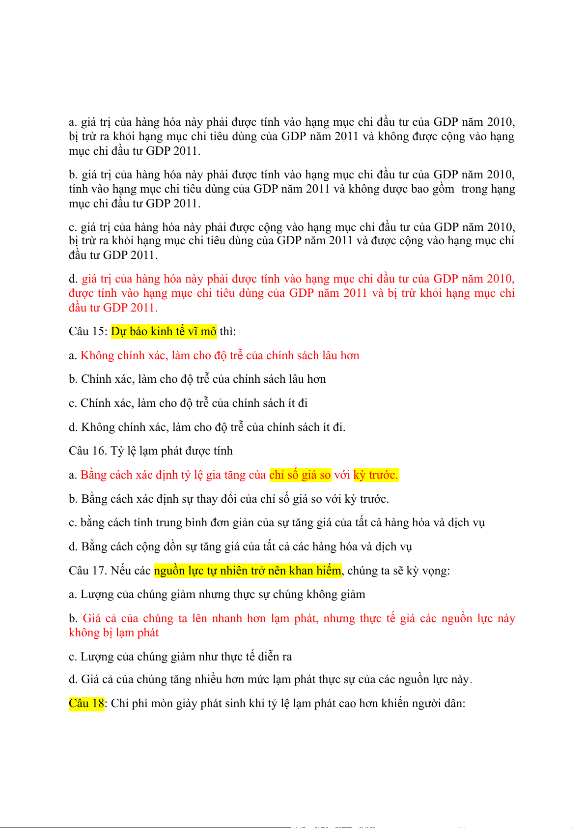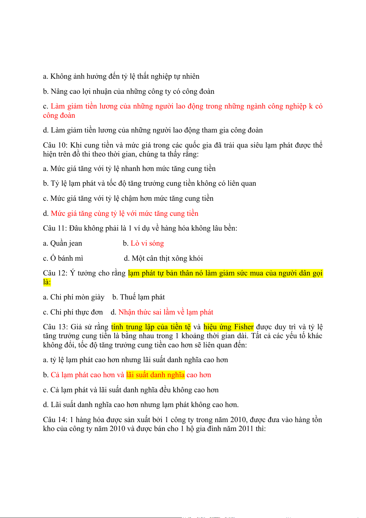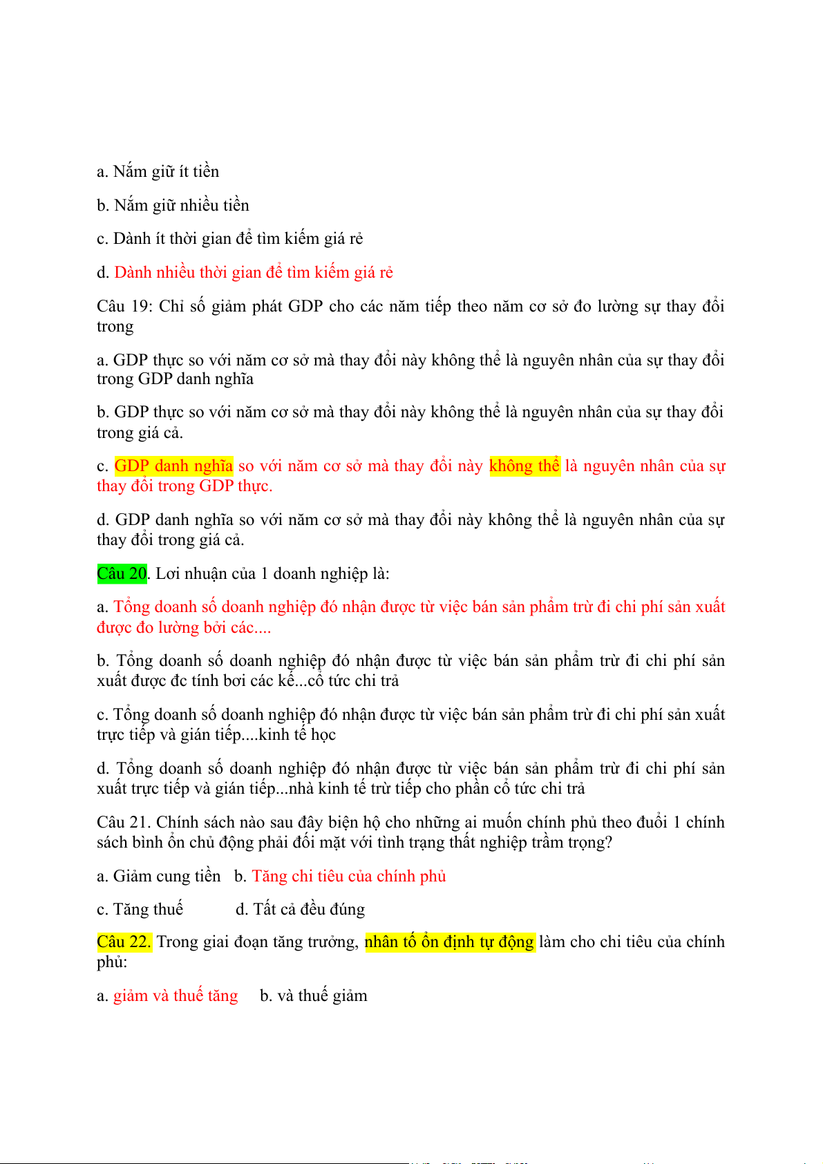 Câu 18: Chi phí mòn giày phát sinh khi tỷ lệ lạm phát cao hơn khiến người dân: a. Nắm giữ ít tiền b. Nắm giữ nhiều tiền