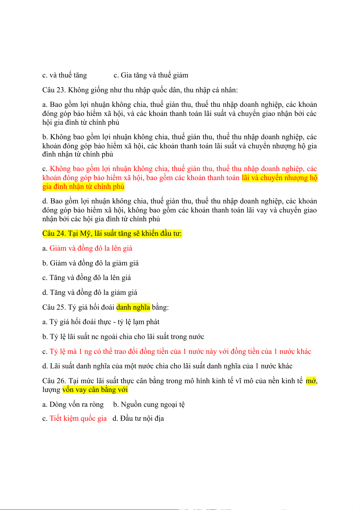 Câu 23. Không giống như thu nhập quốc dân, thu nhập cá nhân: