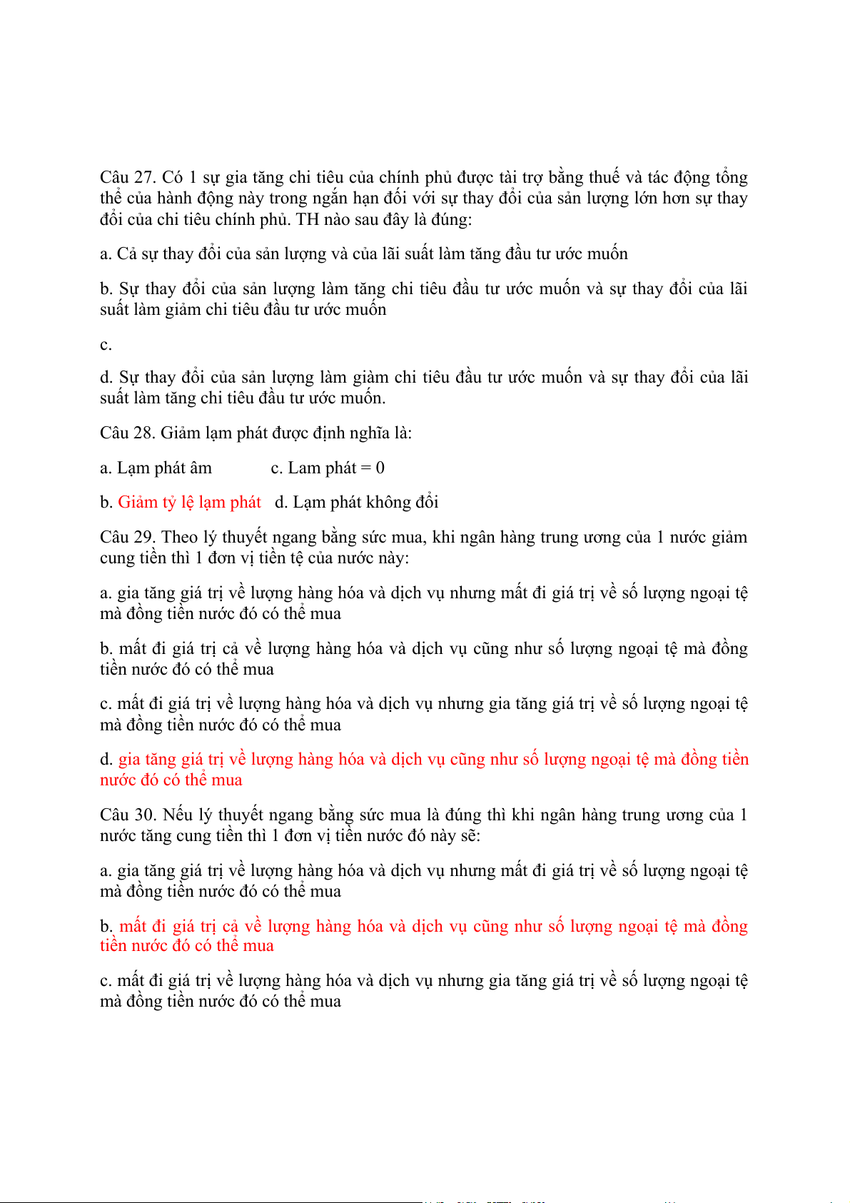 Câu 29. Theo lý thuyết ngang bằng sức mua, khi ngân hàng trung ương của 1 nước giảm