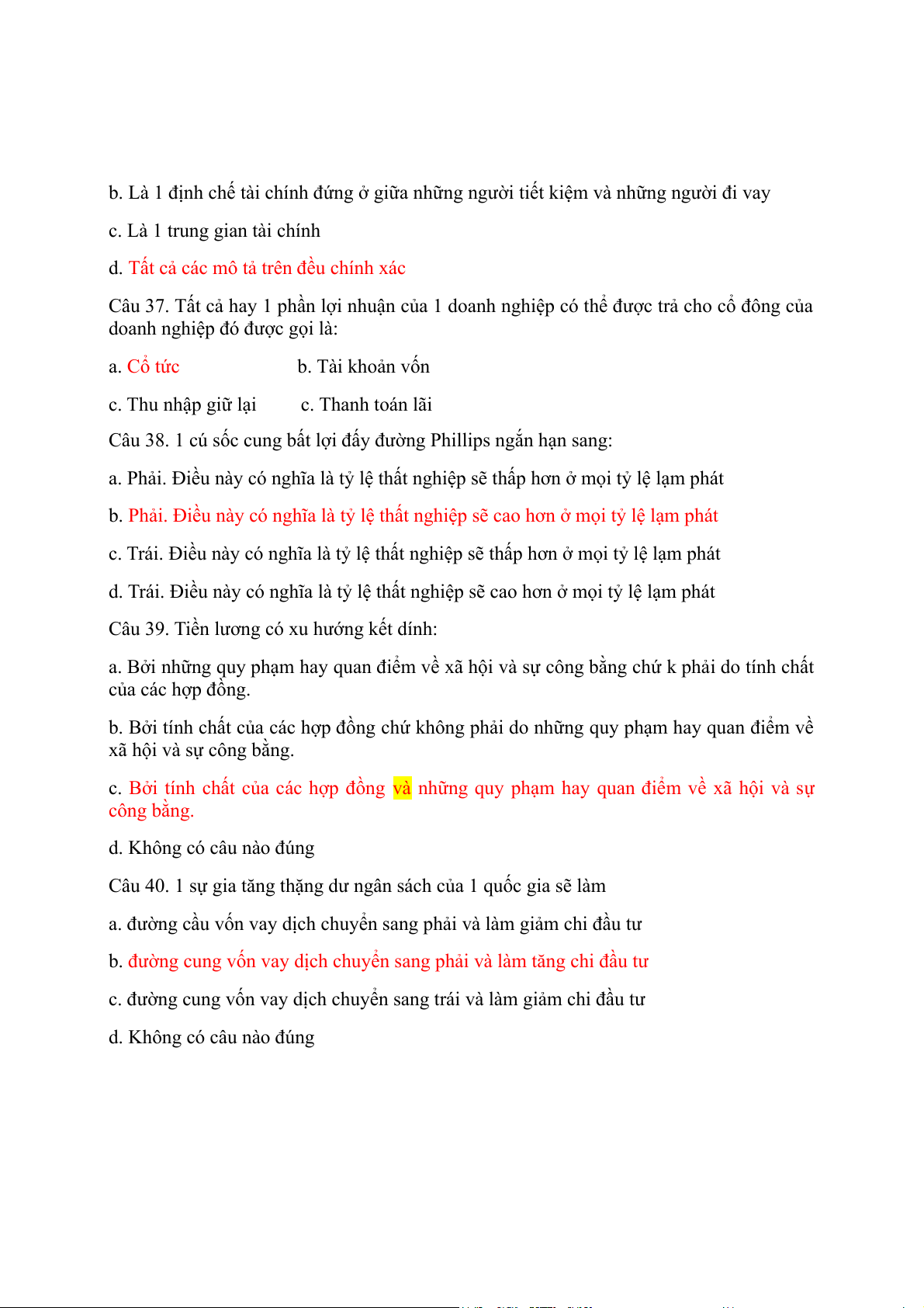 d. Lãi suất giảm và do đó đường tổng cầu dịch chuyển sang trái Câu 35. Tỷ lệ hi sinh là