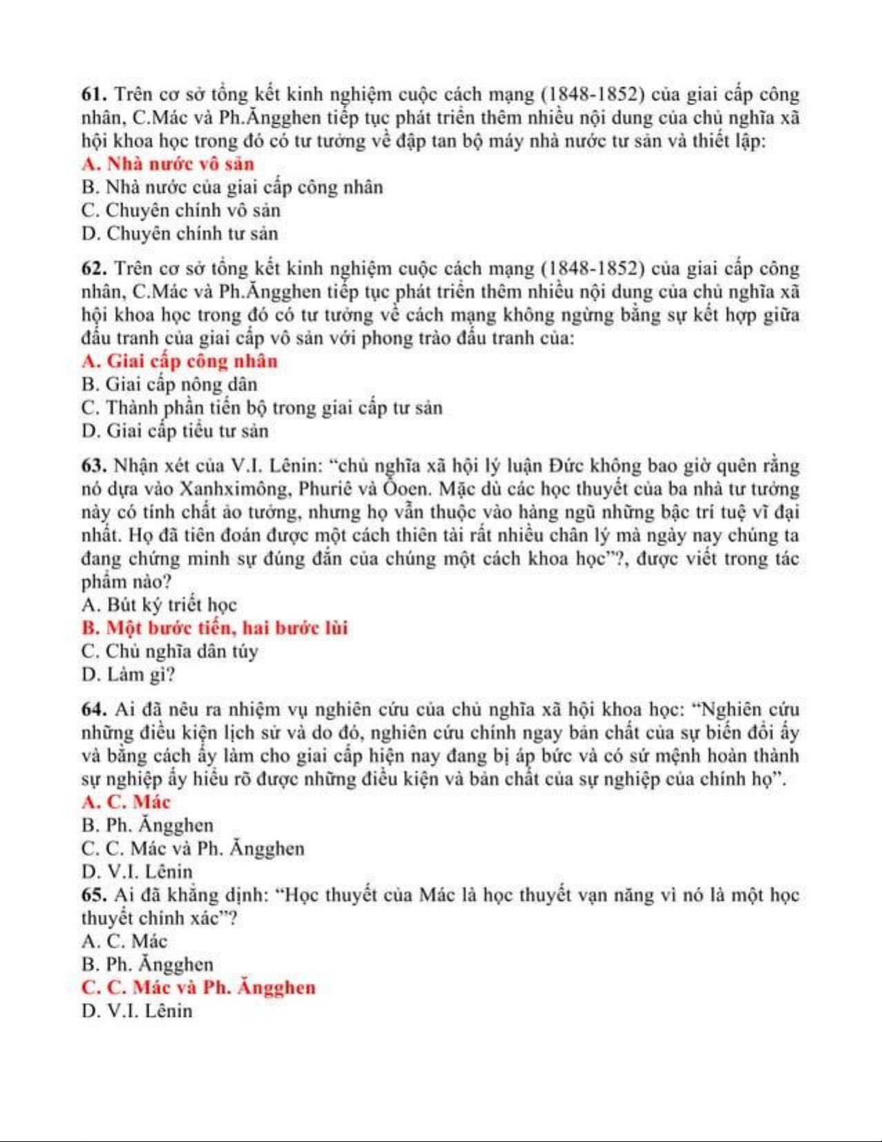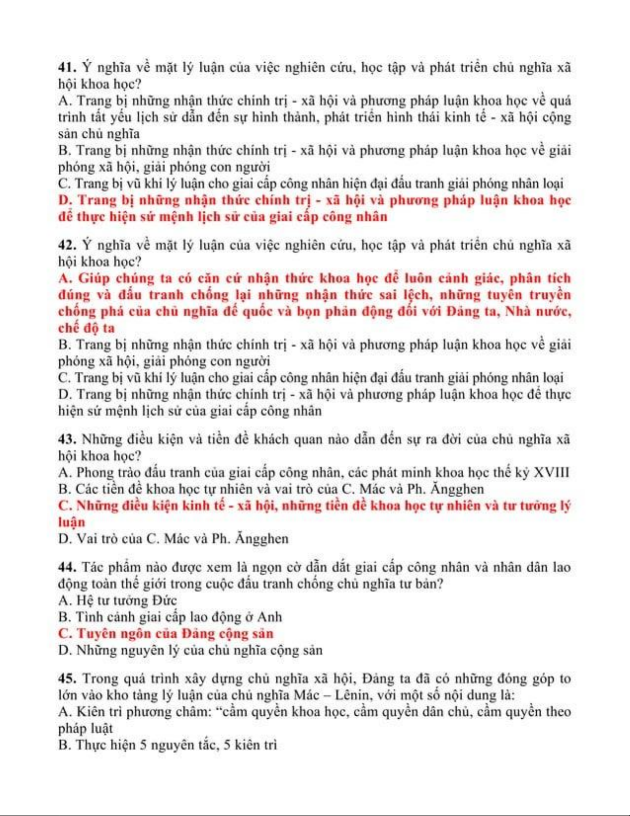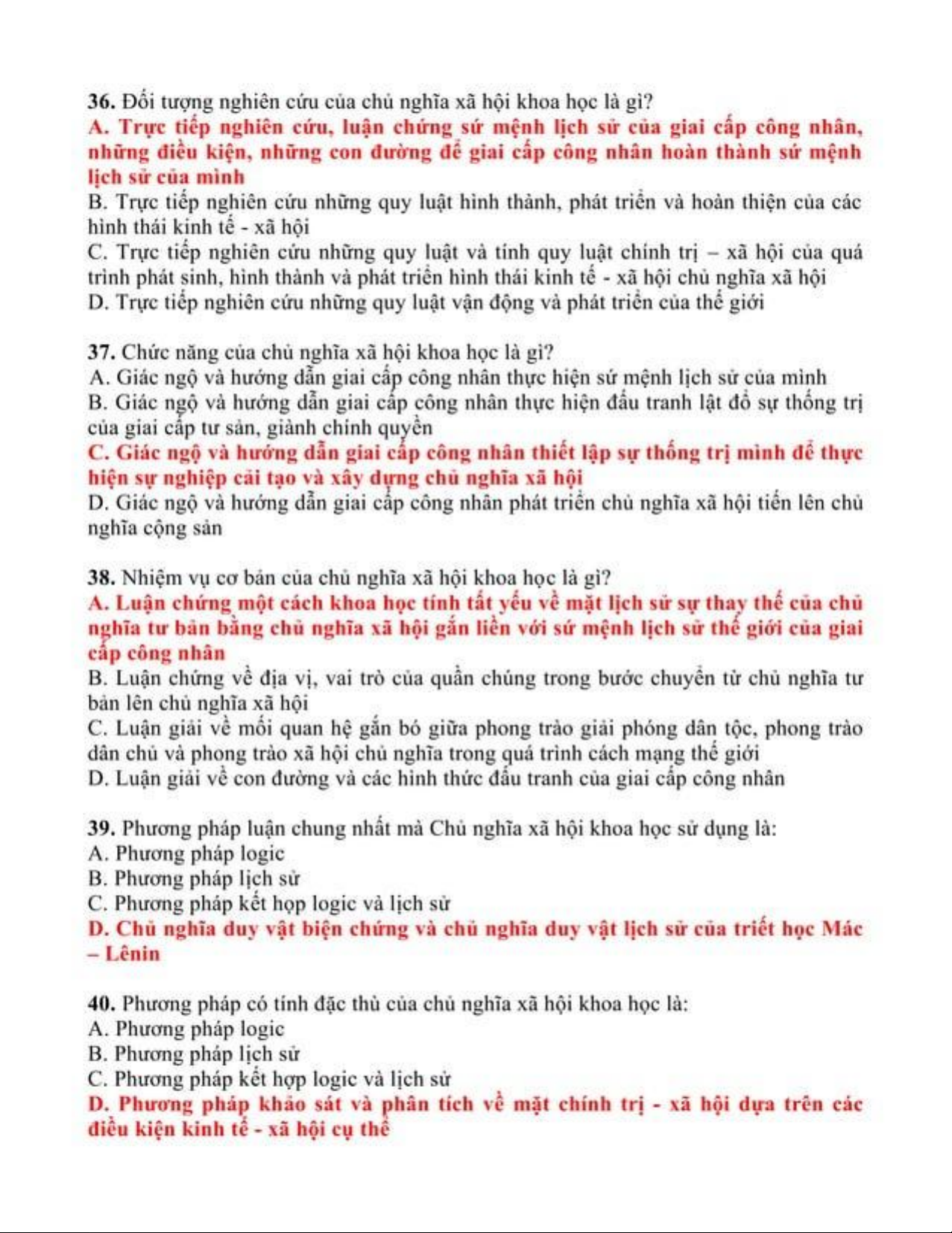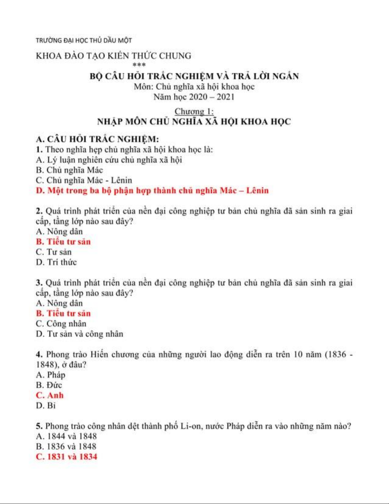 Trắc nghiệm ôn tập môn Chủ nghĩa xã hội khoa học | Trường Đại học Thủ Dầu Một