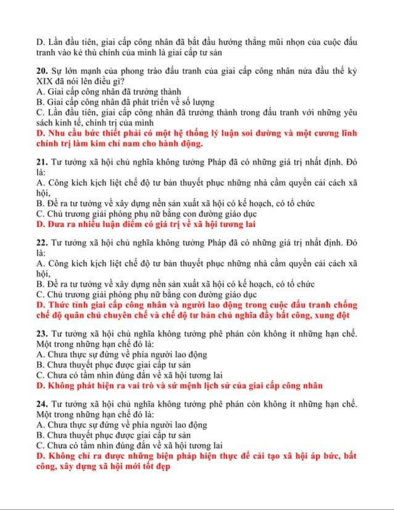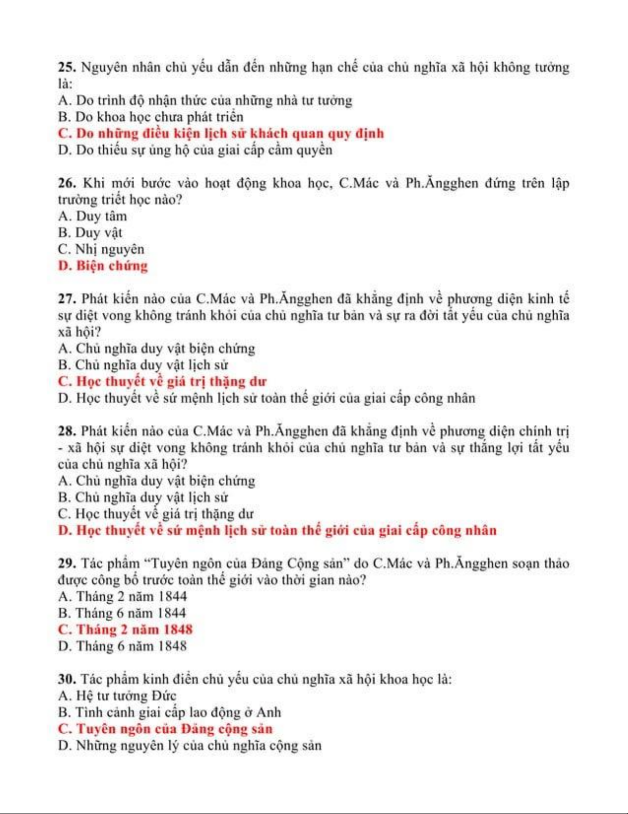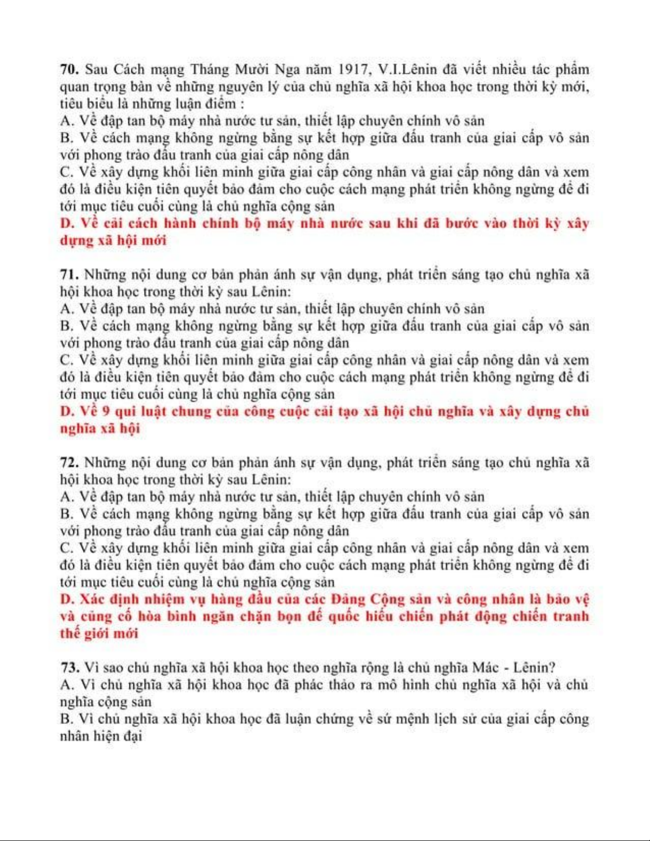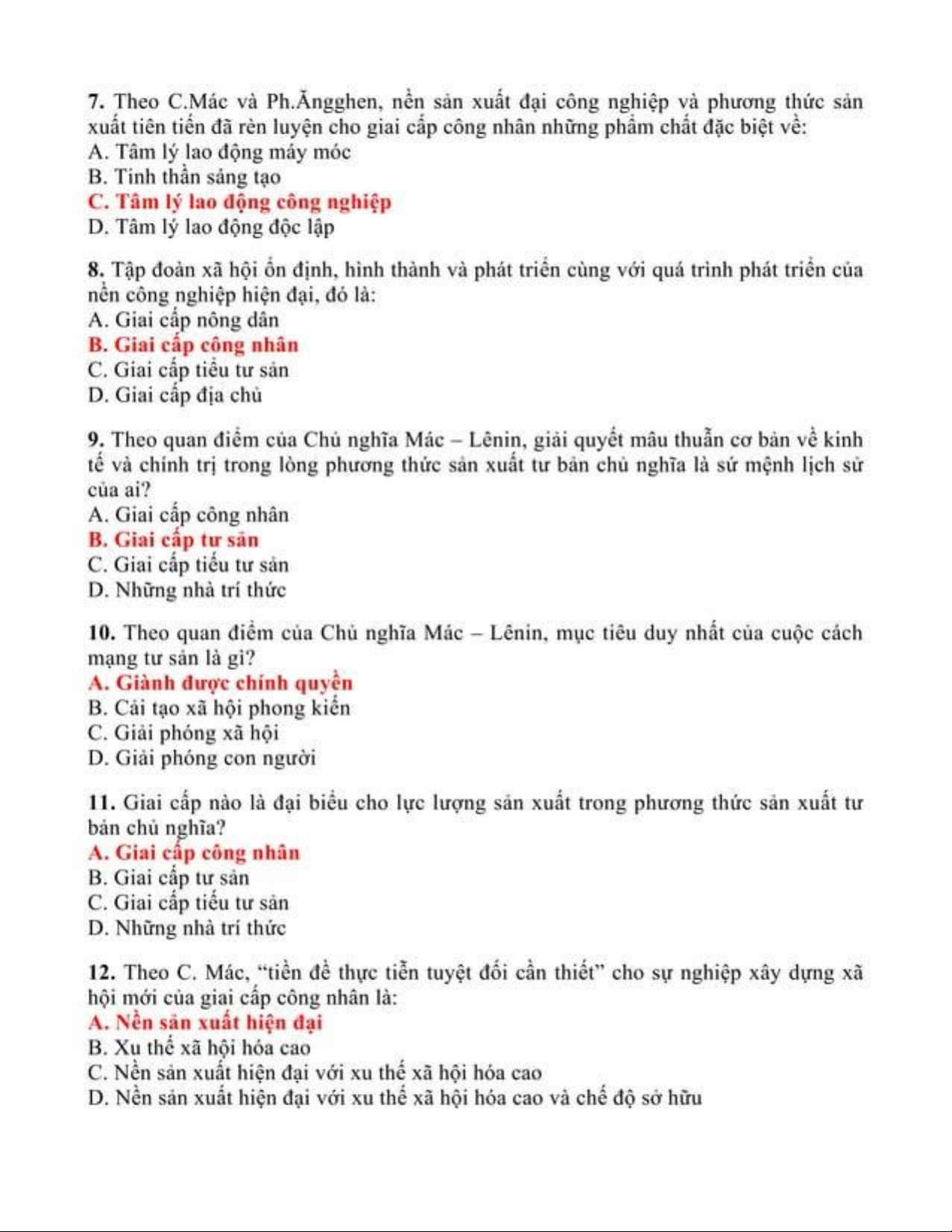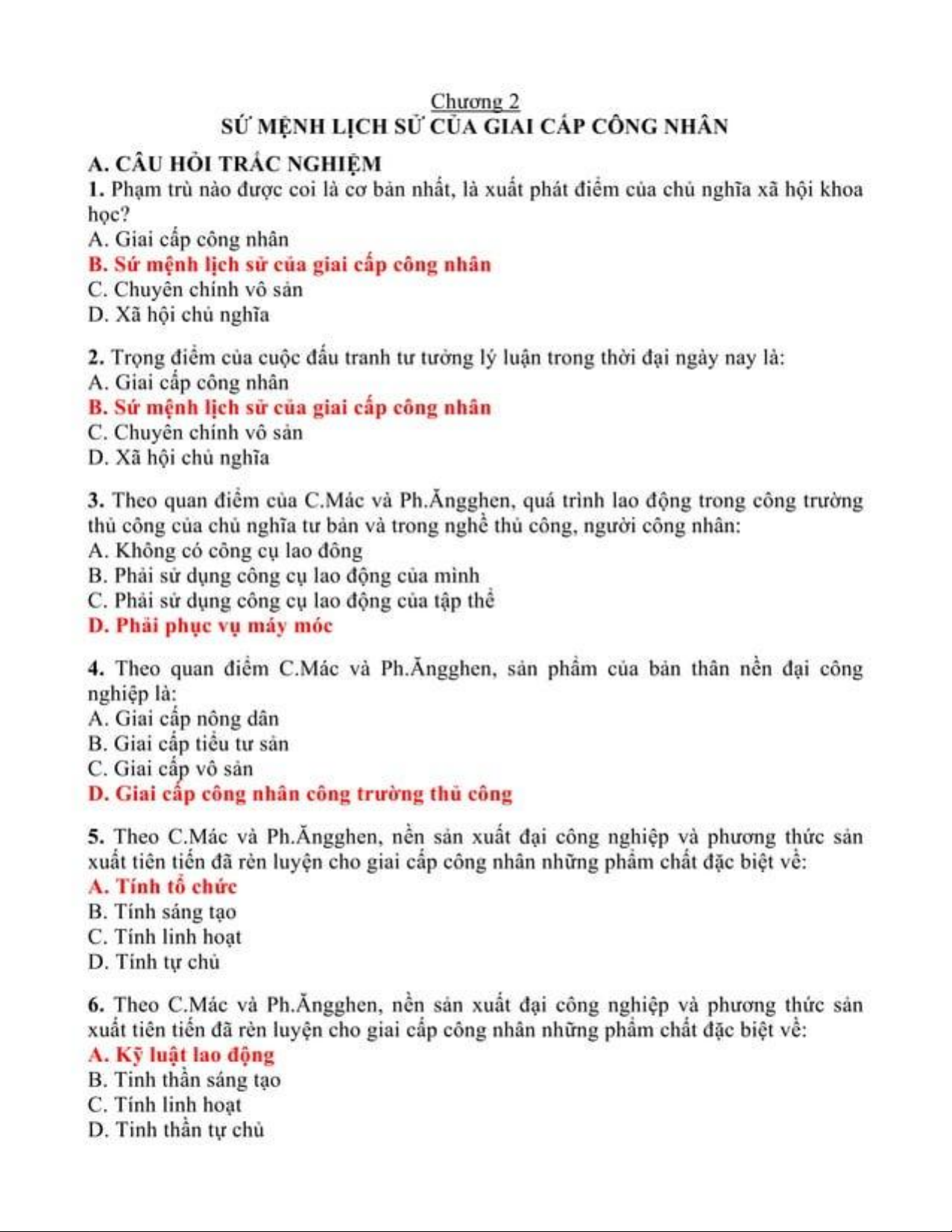 Trắc nghiệm ôn tập môn Chủ nghĩa xã hội khoa học | Trường Đại học Thủ Dầu Một