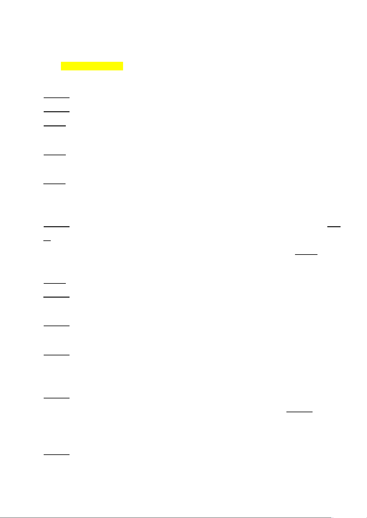 - Tuyệt đối không viết, vẽ, đánh dấu hoặc ghi kí hiệu vào đề thi. Nộp lại đề thi sau khi làm bài