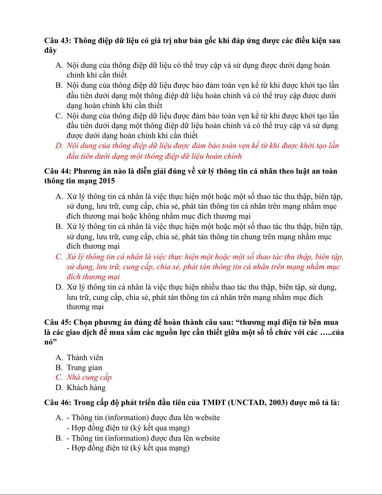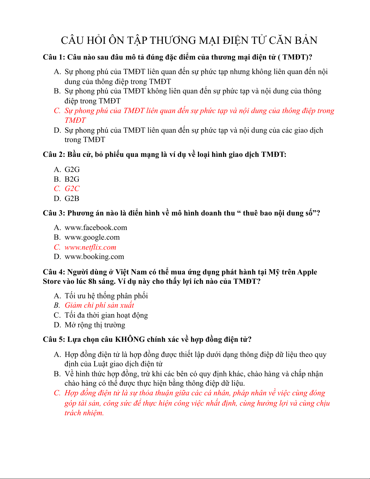 CÂU HỎI ÔN TẬP THƯƠNG MẠI ĐIỆN TỬ CĂN BẢN