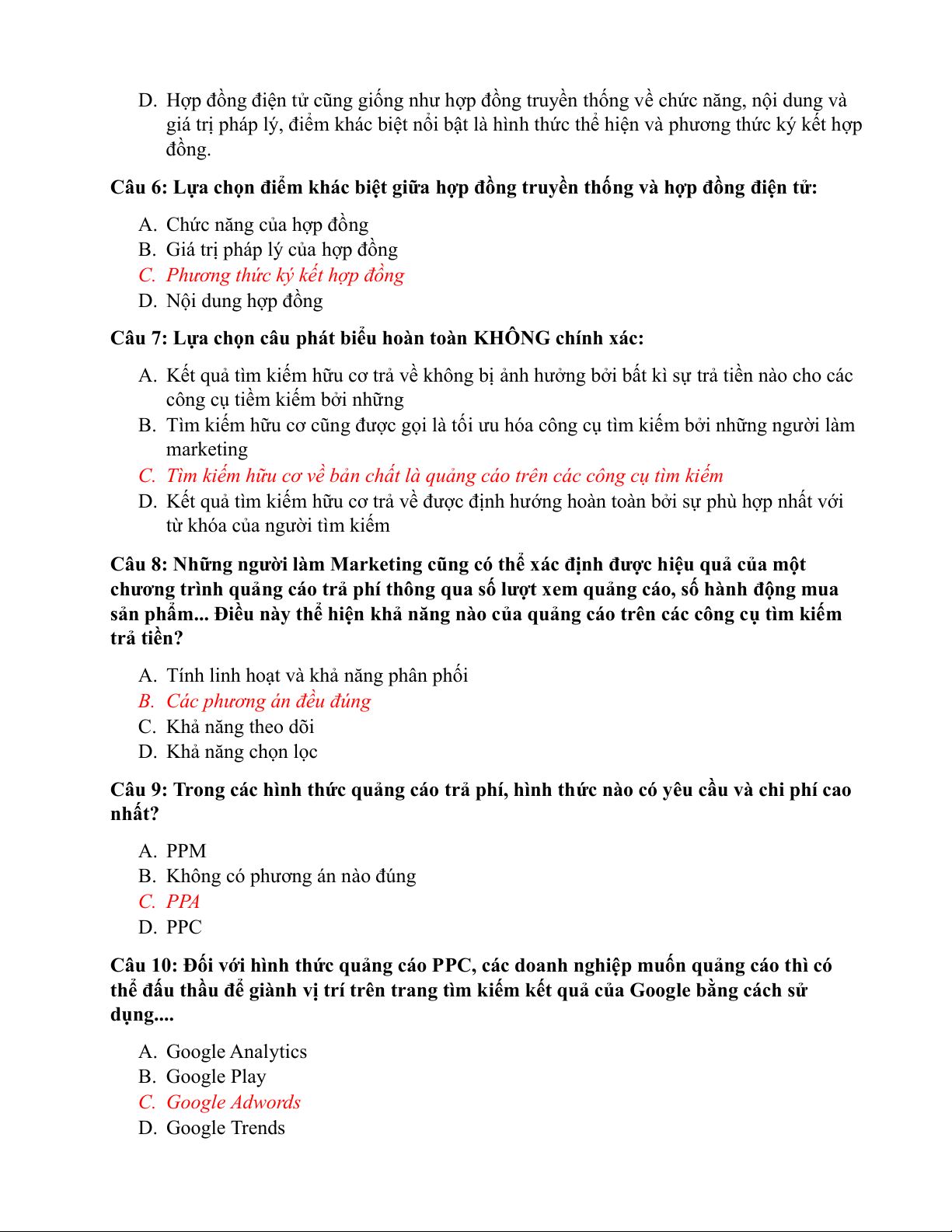 Câu 10: Đối với hình thức quảng cáo PPC, các doanh nghiệp muốn q ả u ng cáo thì có thể đấu thầu ể
