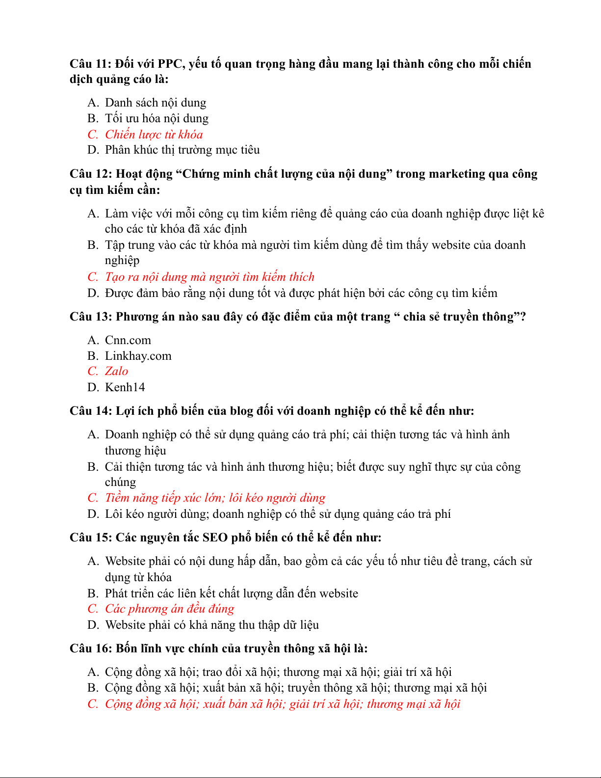 Câu 9: Trong các hình thức quảng cáo trả phí, hình thức nào có yêu cầu và chi phí cao nhất? A. PPM