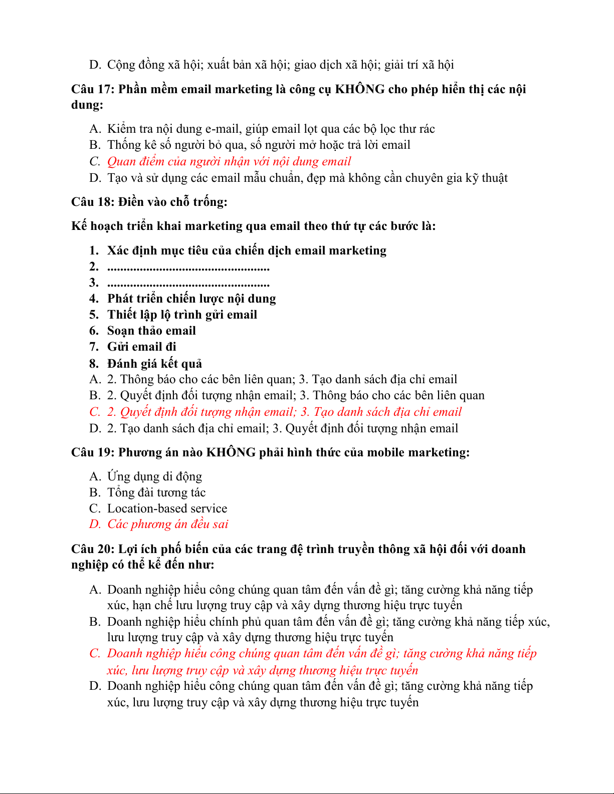 C. Chiến lược từ khóa D. Phân khúc thị tr ờng ư mục tiêu Câu 12: Hoạt động “