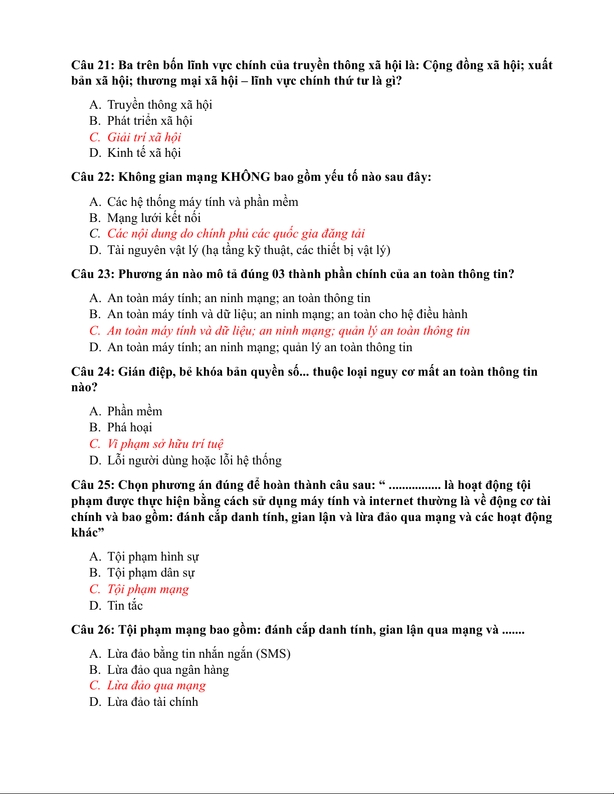 Câu 16: Bốn lĩnh vực chính của truyền thông xã hội là: