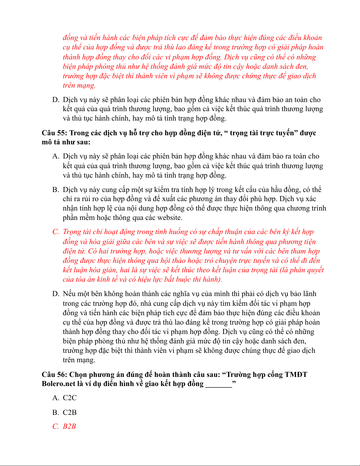 Câu 55: Trong các dịch vụ hỗ trợ cho hợp đồng đ ệ