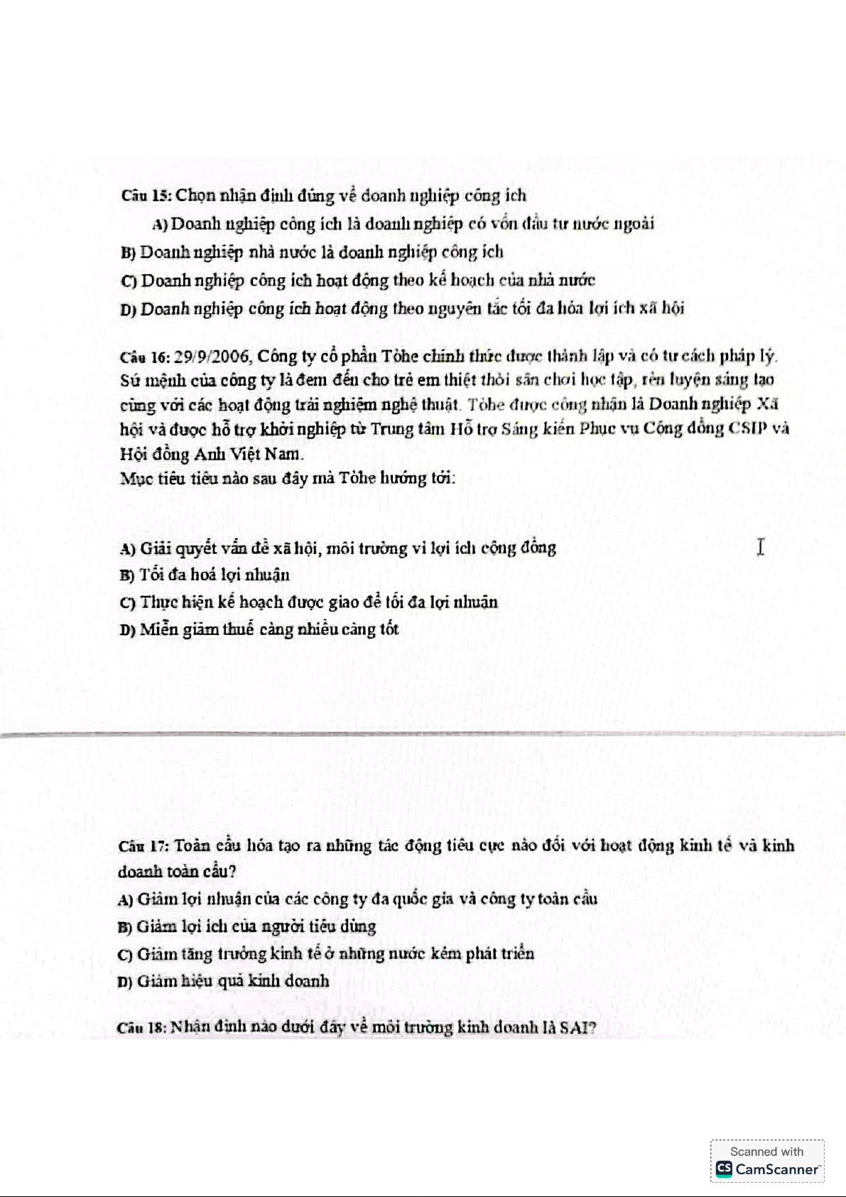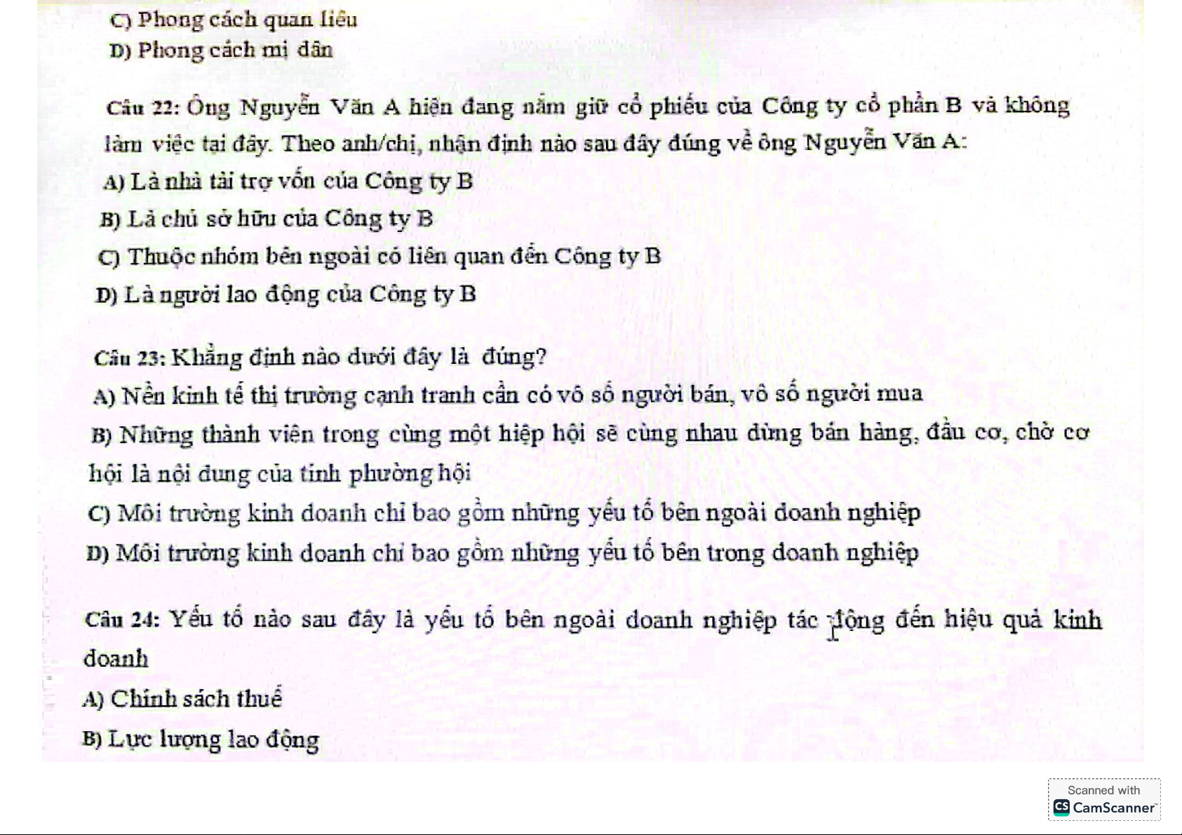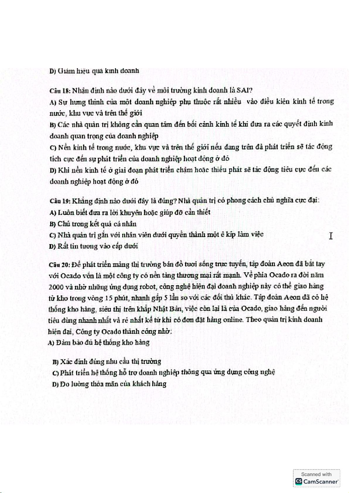 Trắc nghiệm quản trị kinh doanh | Học viện Báo chí và Tuyên truyền