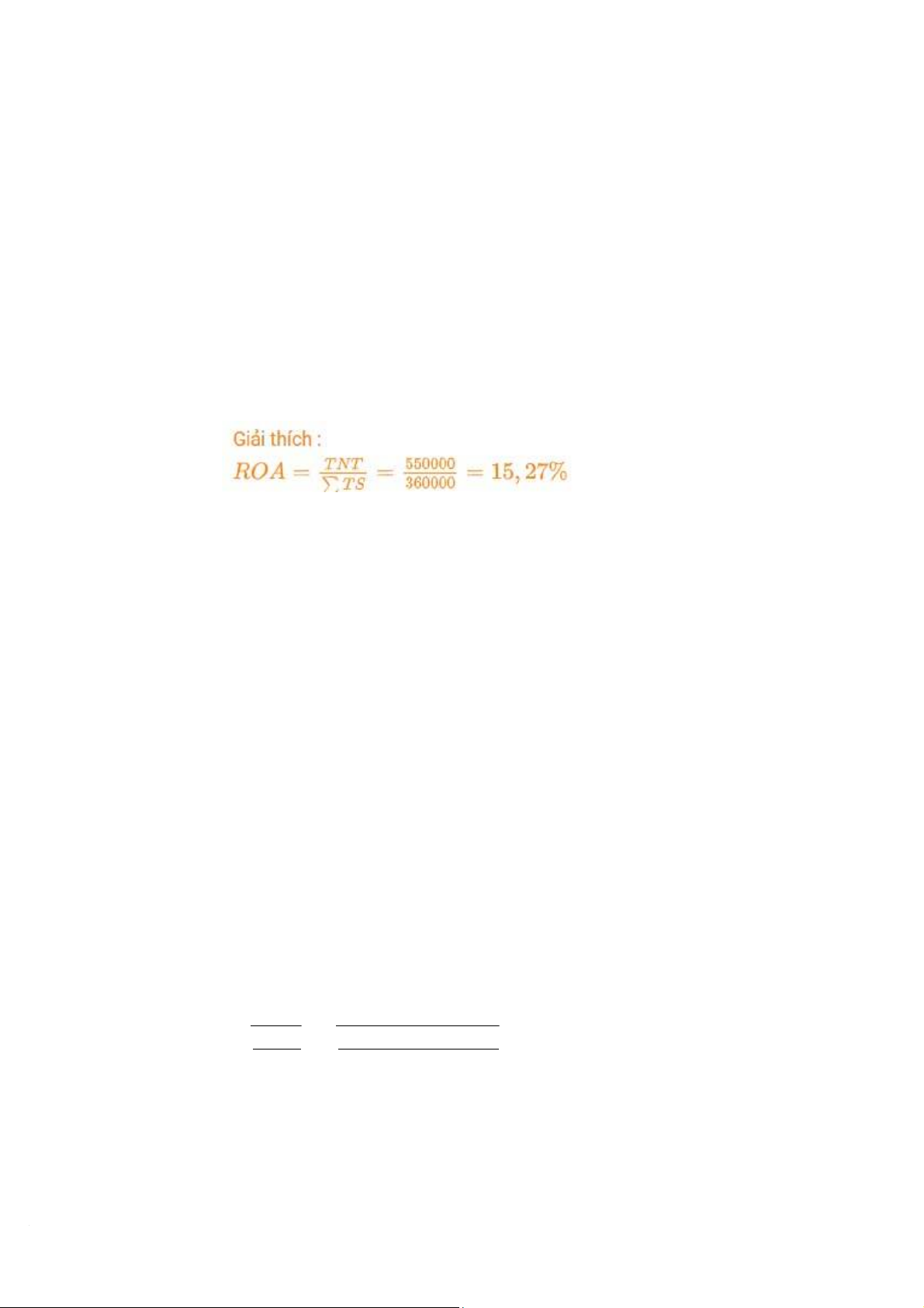 nghiệp là 25%, thì tỷ suất thu nhập sau thuế trên tổng vốn kinh doanh là => 10% TNST − − Giải thích: =TNST T = 1200 1200∗25% V V = 0,1 = 10% 9000