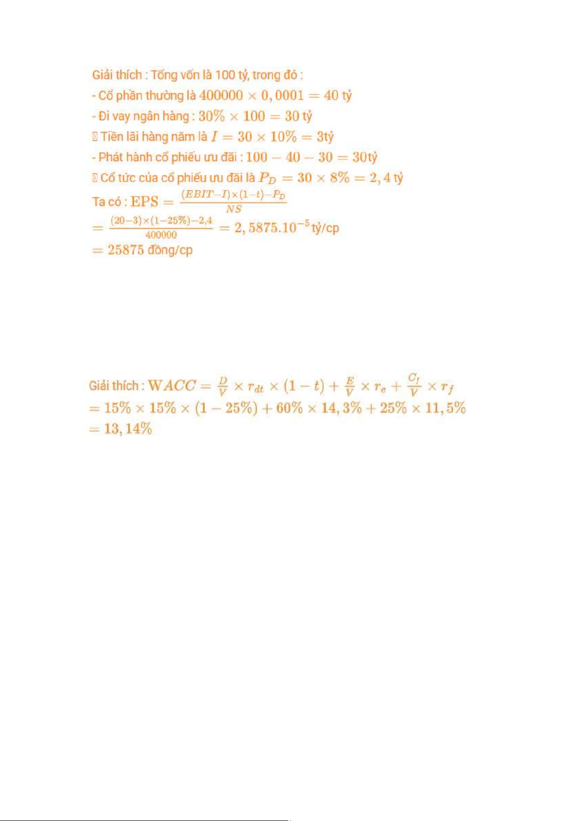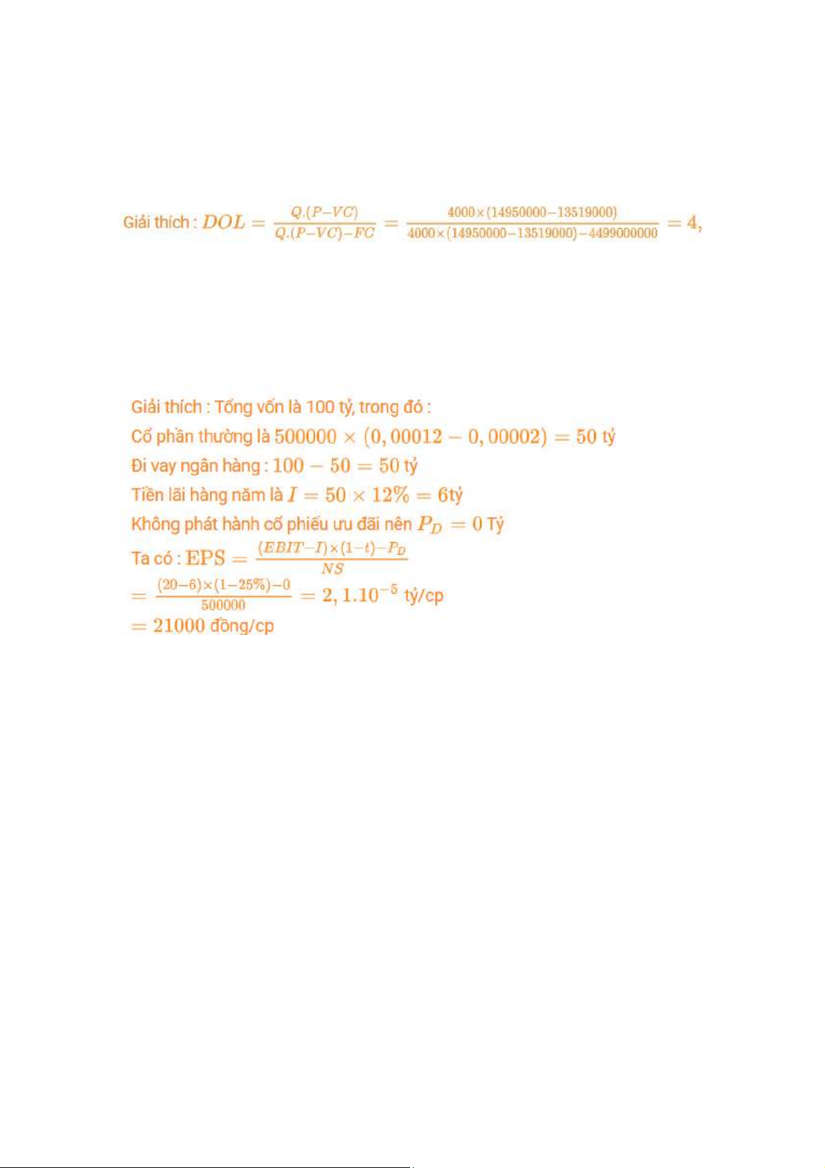 thu nhập doanh nghiệp là 25%. EPS tương ứng với mức EBIT trên là => 21.000 đồng/CP