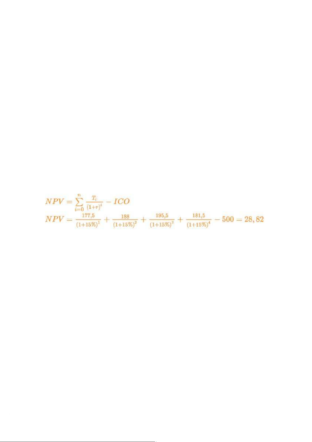 đường thẳng. Chi phí sử dụng vốn của công ty là 15%/năm. Giá trị hiện tại thuần NPV của dự án là => 28,8 triệu đồng Giải thích :