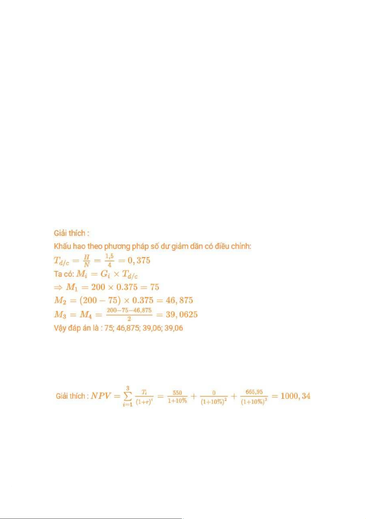 năm, khấu hao theo phương pháp số dư giảm dần có điều chỉnh. Mức trích khấu hao
