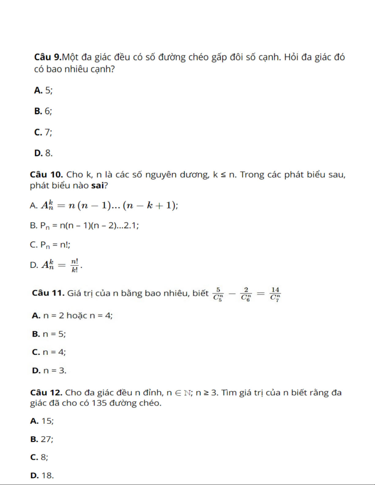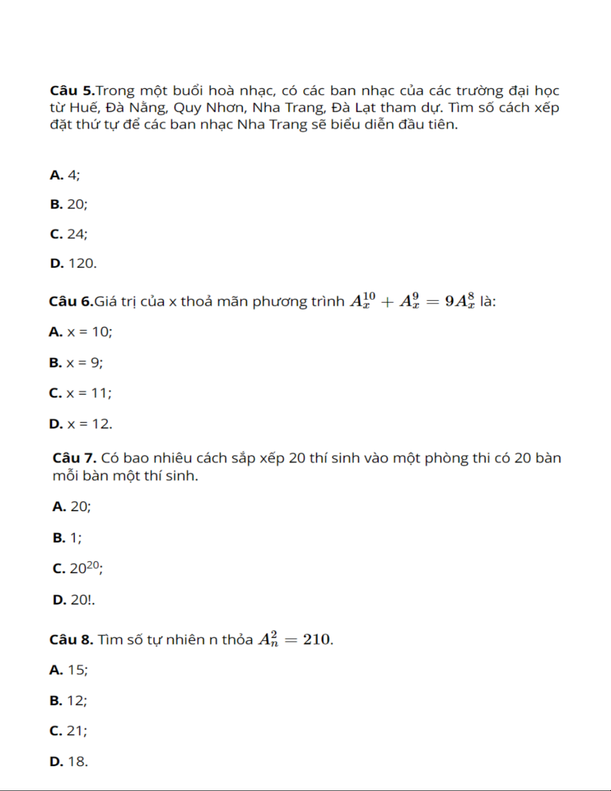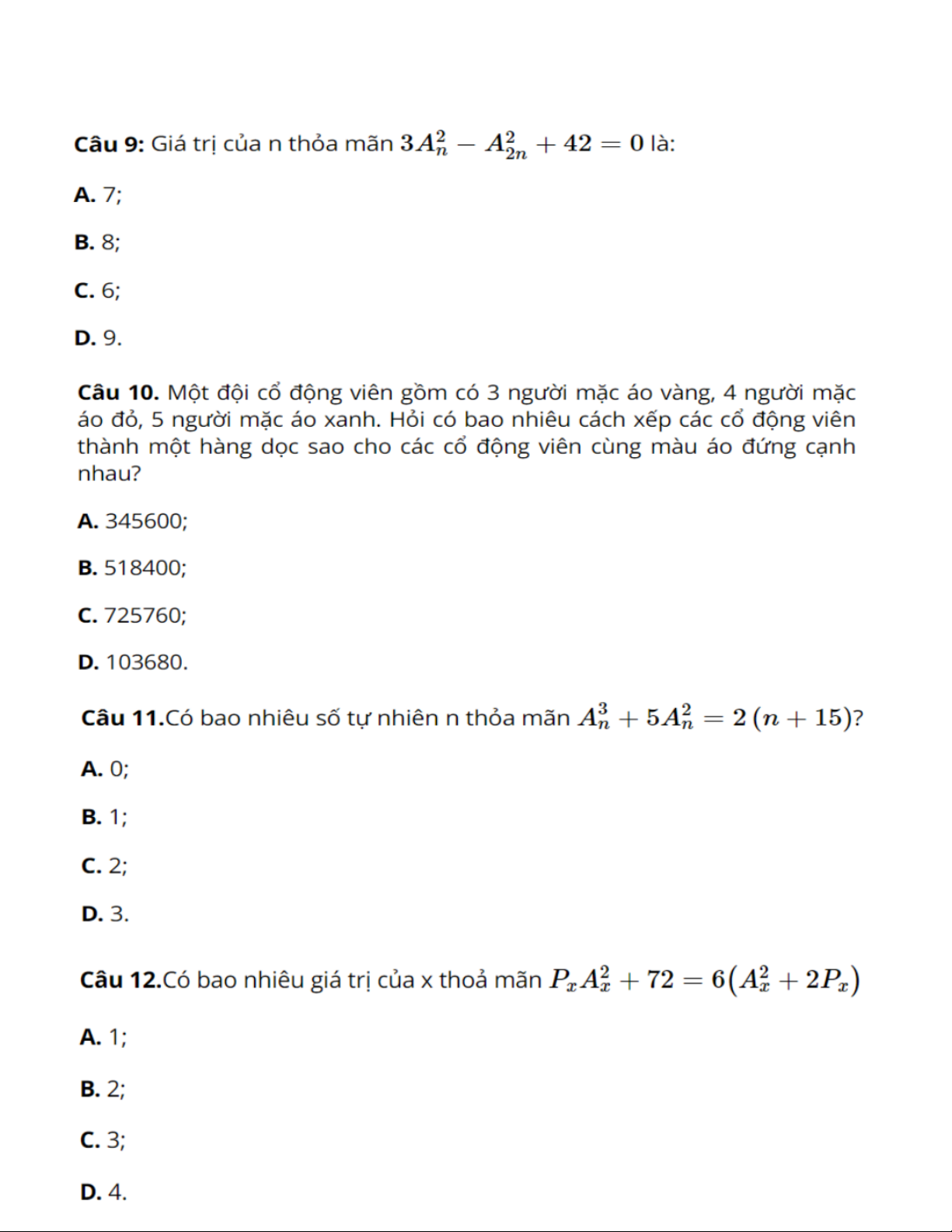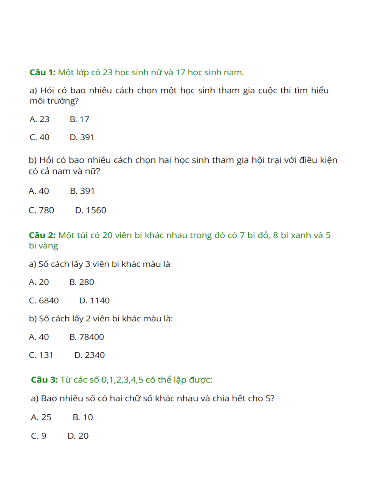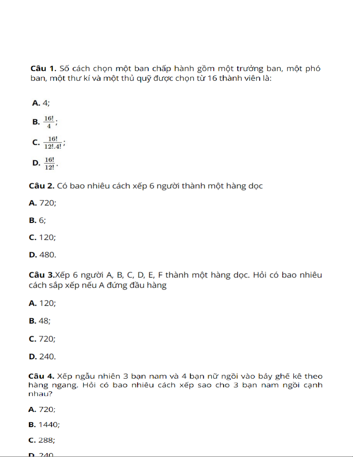 TRẮC NGHIỆM HOÁN VỊ - CHỈNH HỢP TRẮC NGHIỆM TỔ HỢP
