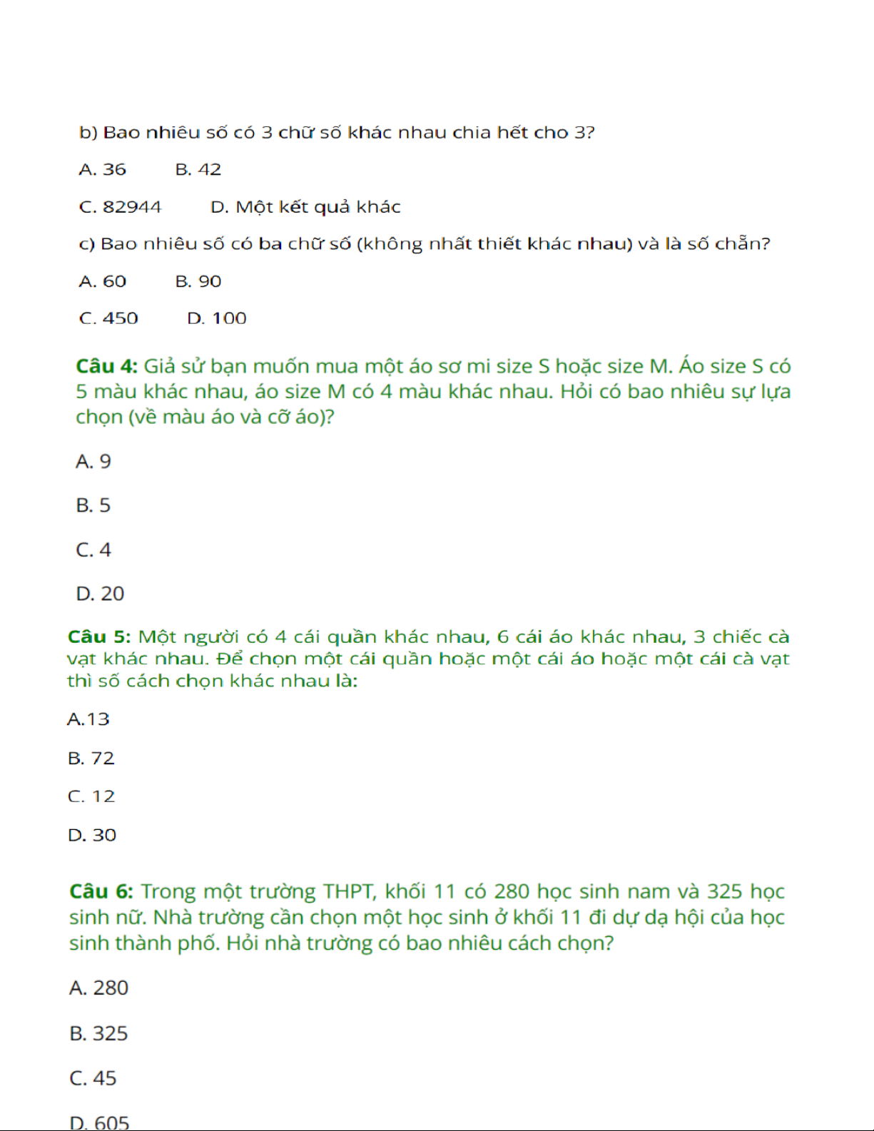 Trắc nghiệm quy tắc đếm có đáp án - n/a môn Xác suất thống kê|Trường Đại học Ngoại Thương. Tài liệu giúp bạn tham khảo, ôn tập và đạt kết quả cao. Mời đọc đón xem!