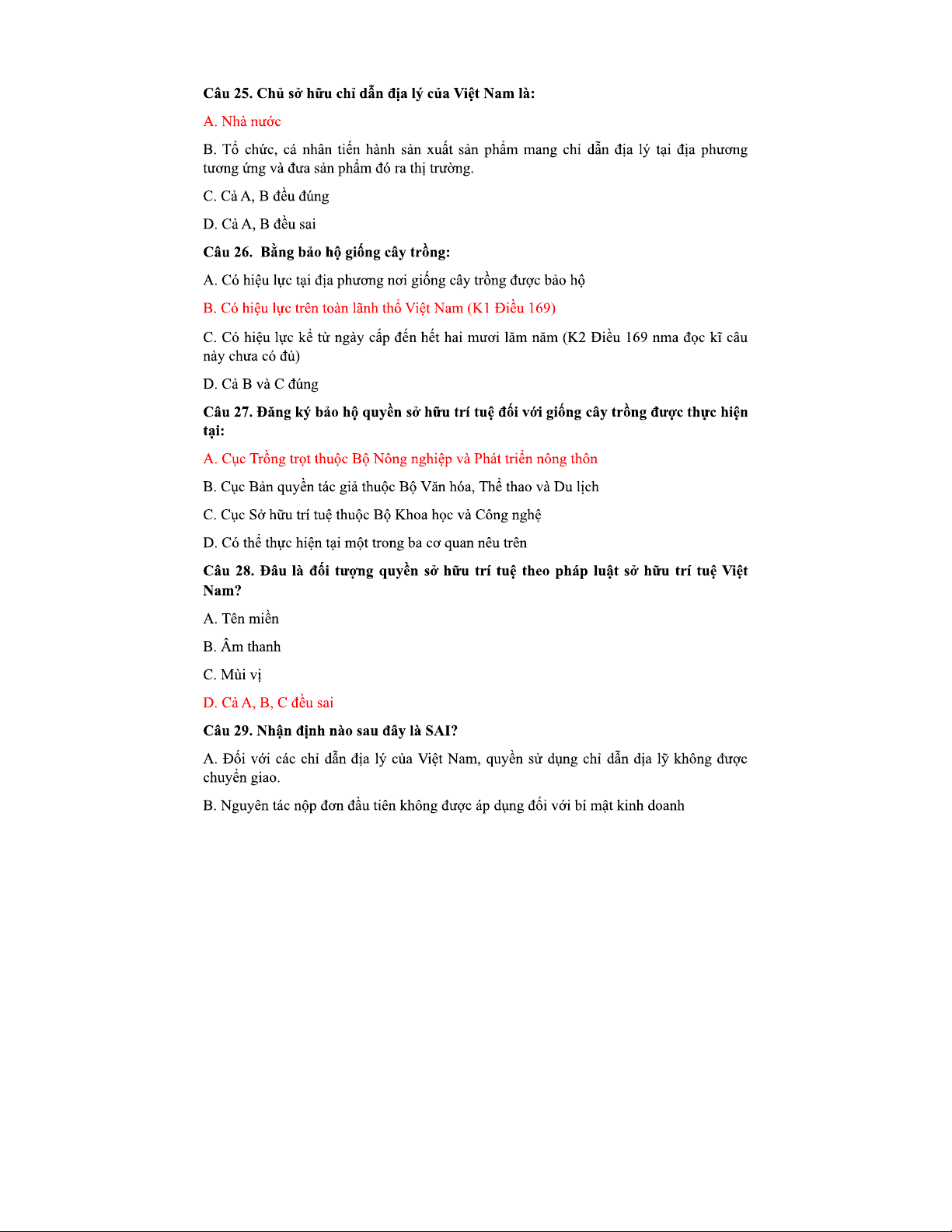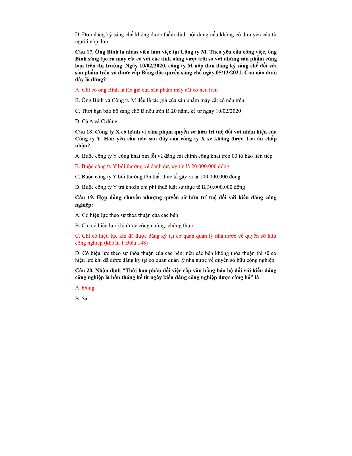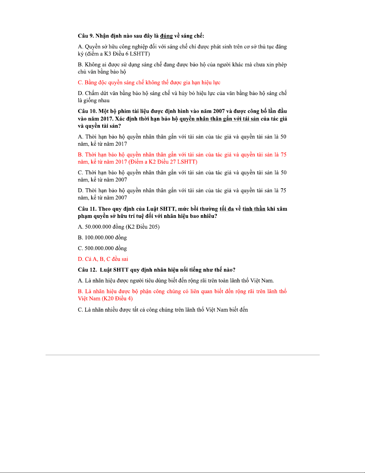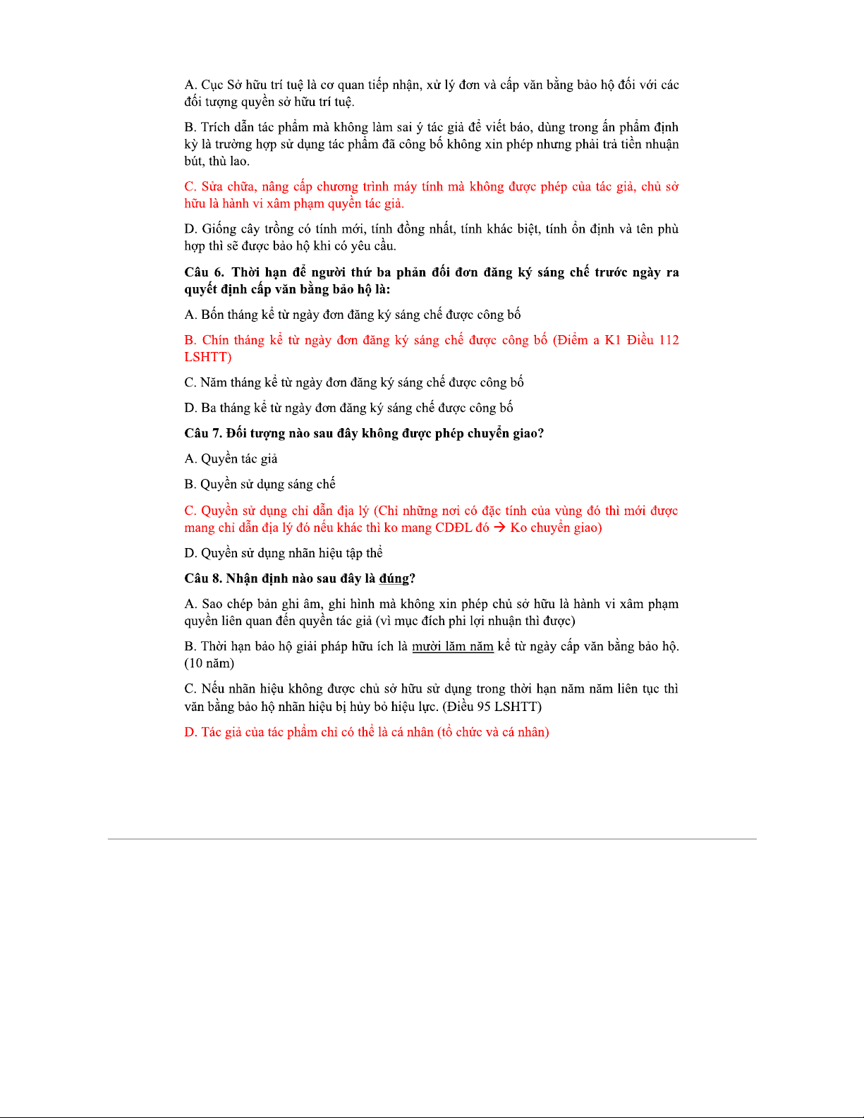 Trắc nghiệm SHTT - Đáp án và Chỉnh sửa Chi Tiết cho Sinh Viên