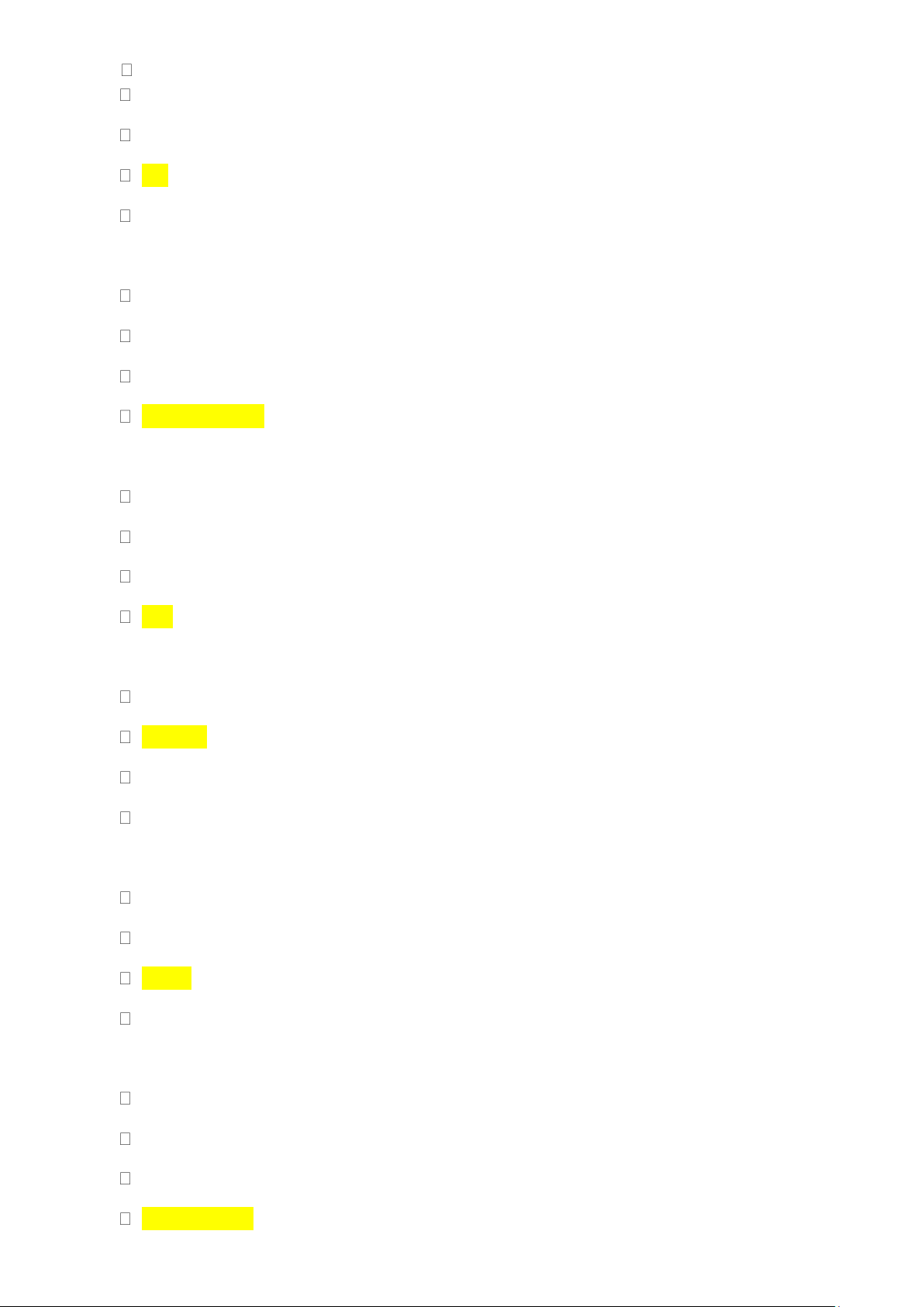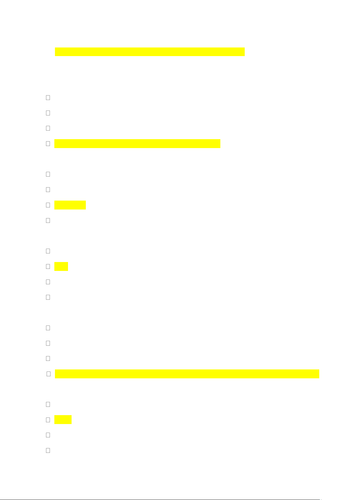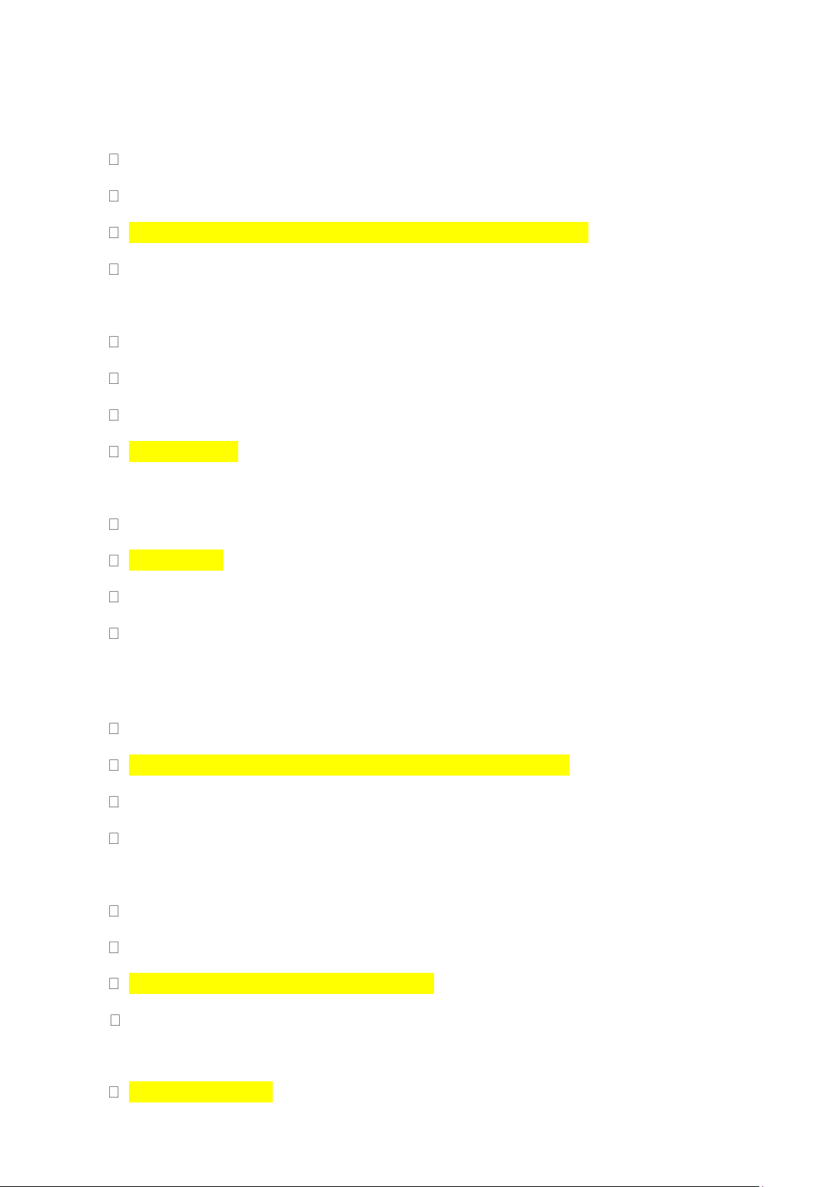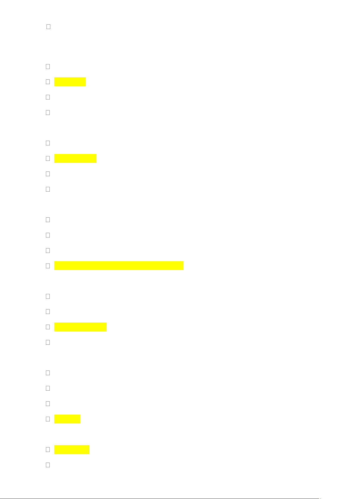 Câu 730: Suy giảm chức năng cơ quan nào sau đây không liên quan đến quá trình sản sinh hồng  cầu      lOMoAR cPSD| 47205411    Thận   Gan   Tụy   Dạ dày