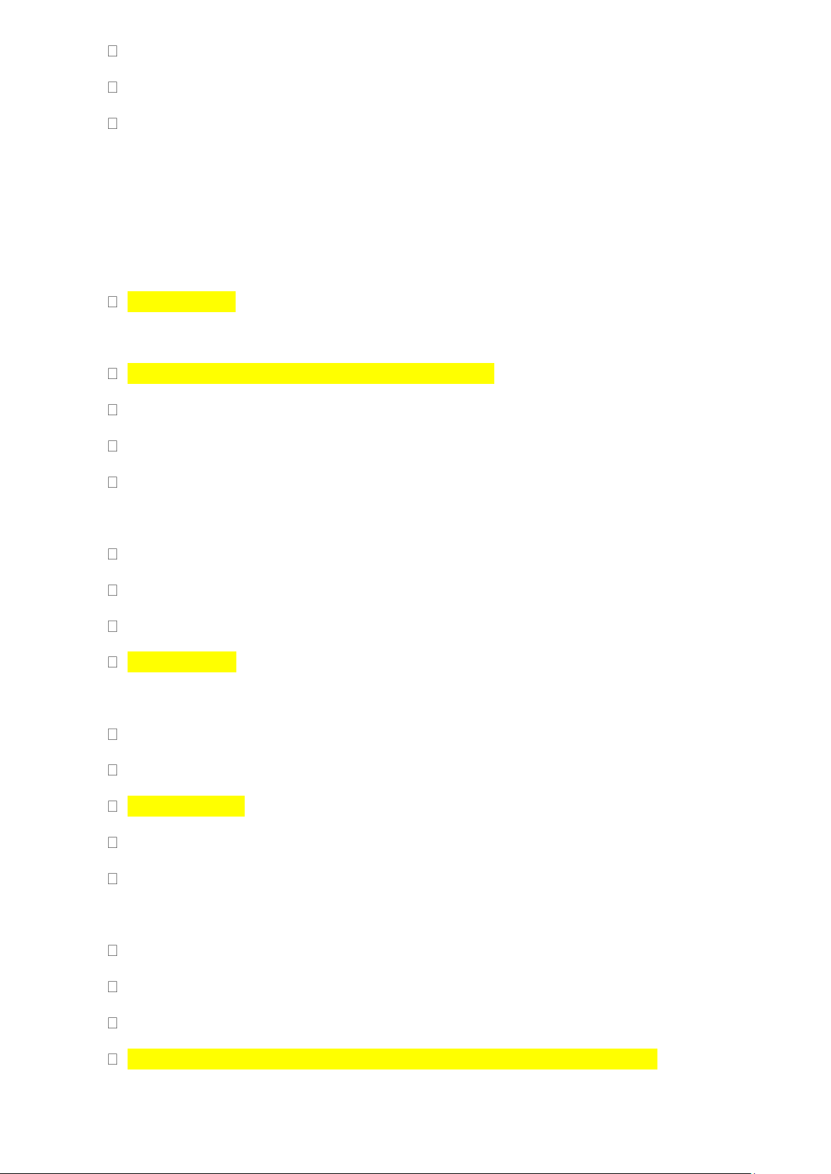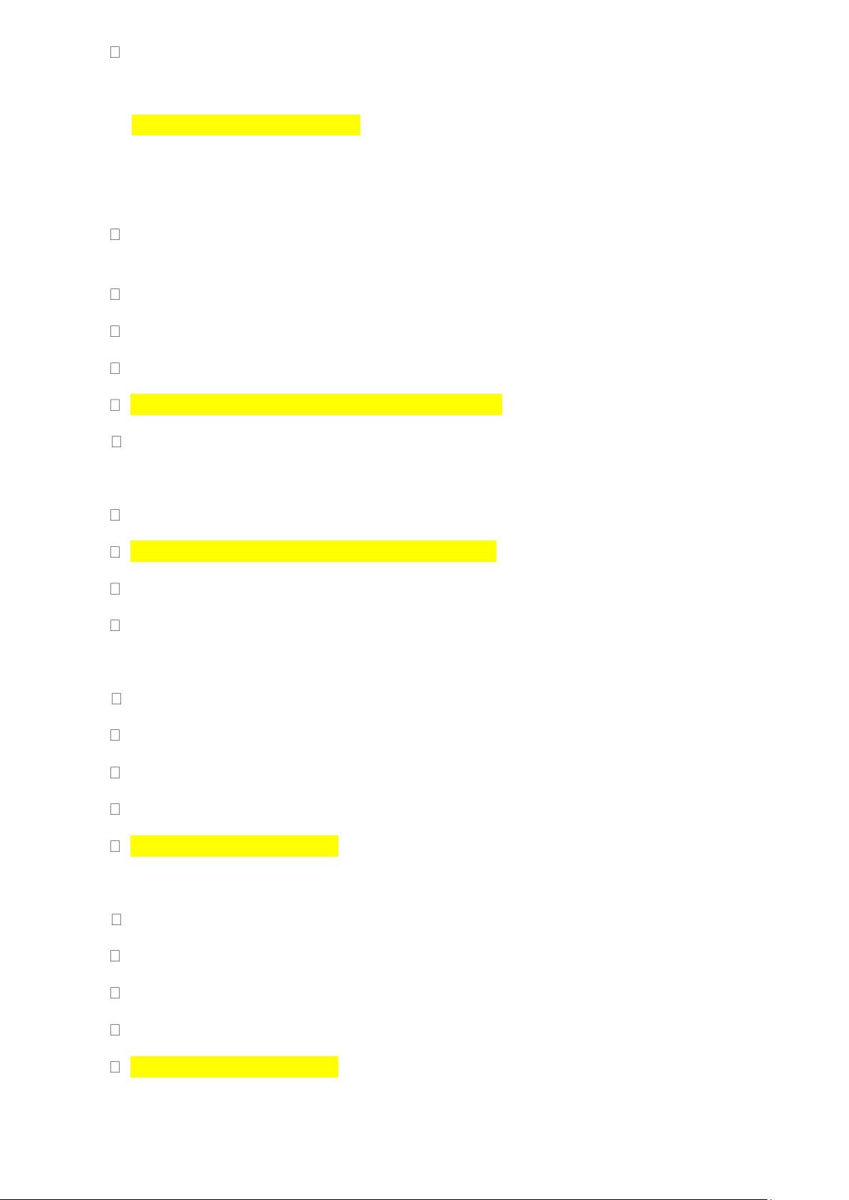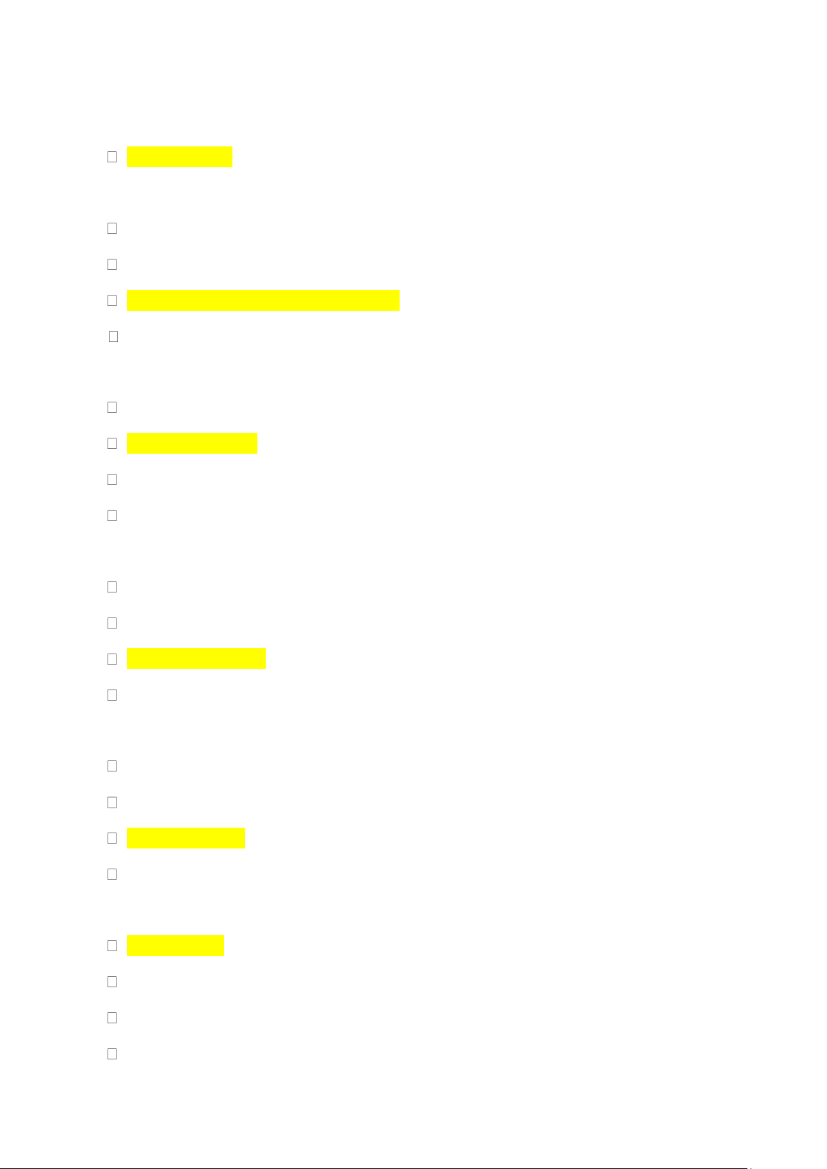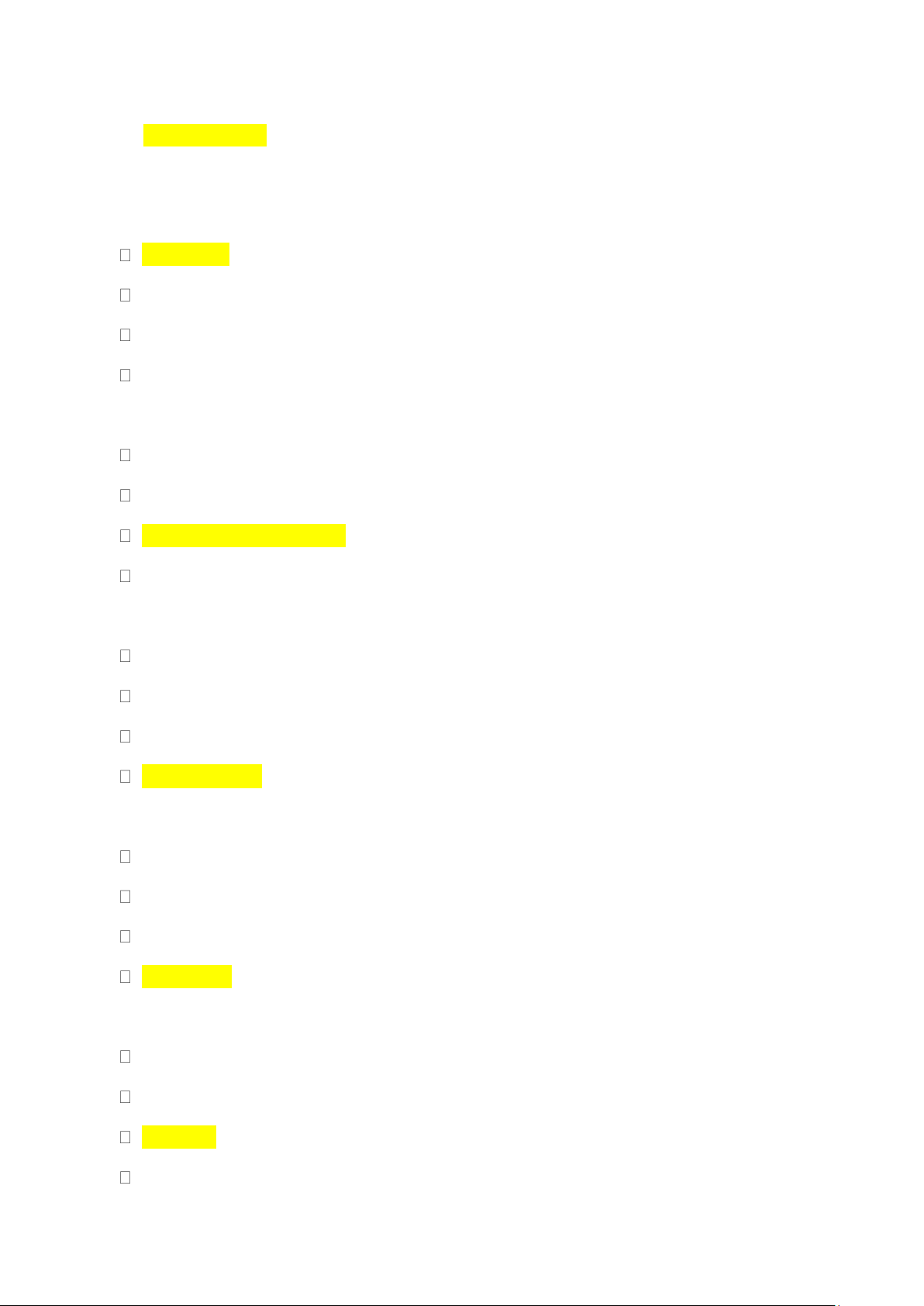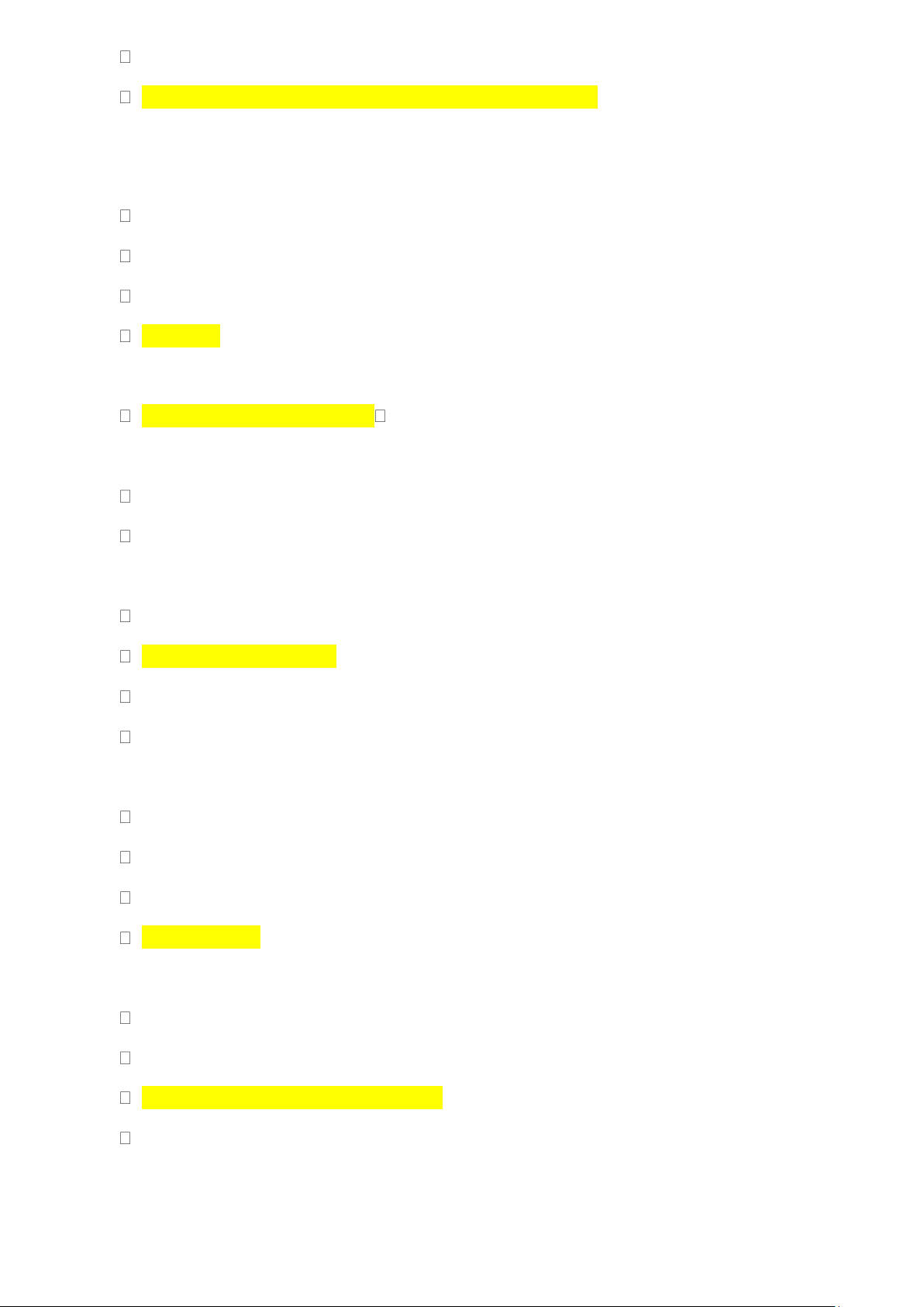 Câu 730: Suy giảm chức năng cơ quan nào sau đây không liên quan đến quá trình sản sinh hồng  cầu      lOMoAR cPSD| 47205411    Thận   Gan   Tụy   Dạ dày