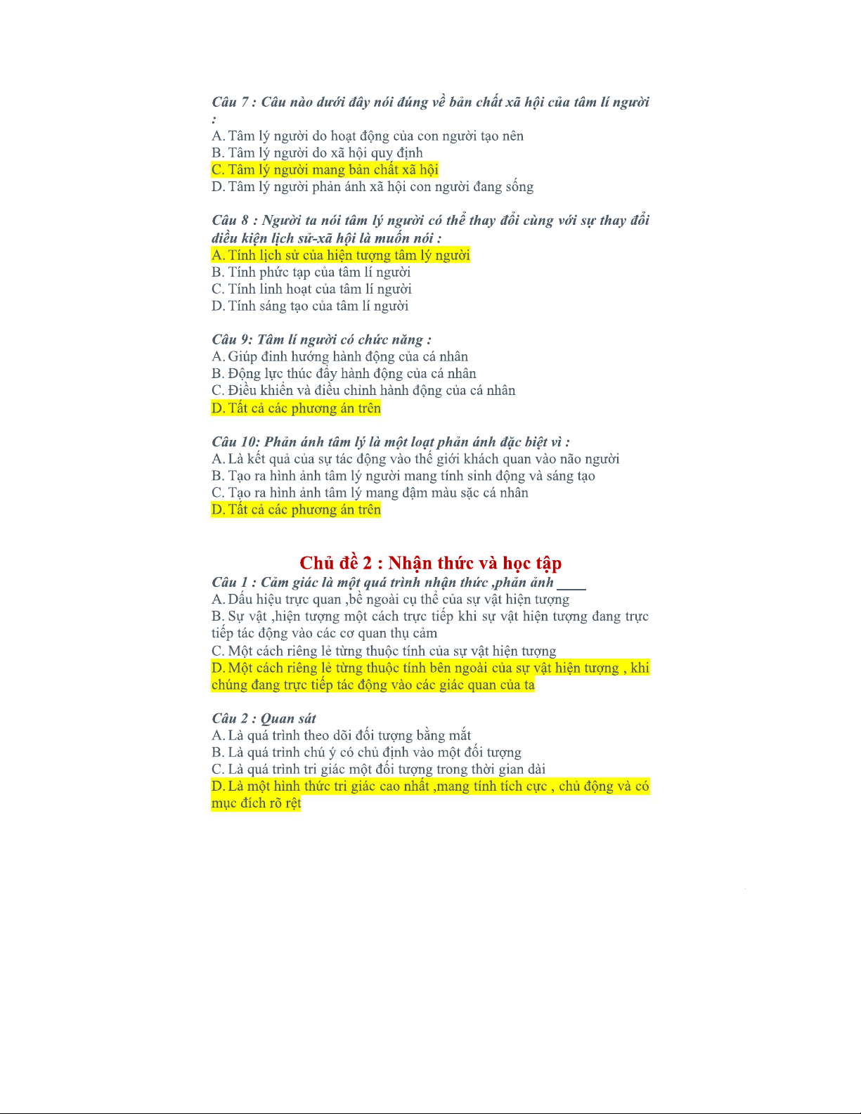 Môn: tâm lý học đại cương (HLU) 97 tài liệu